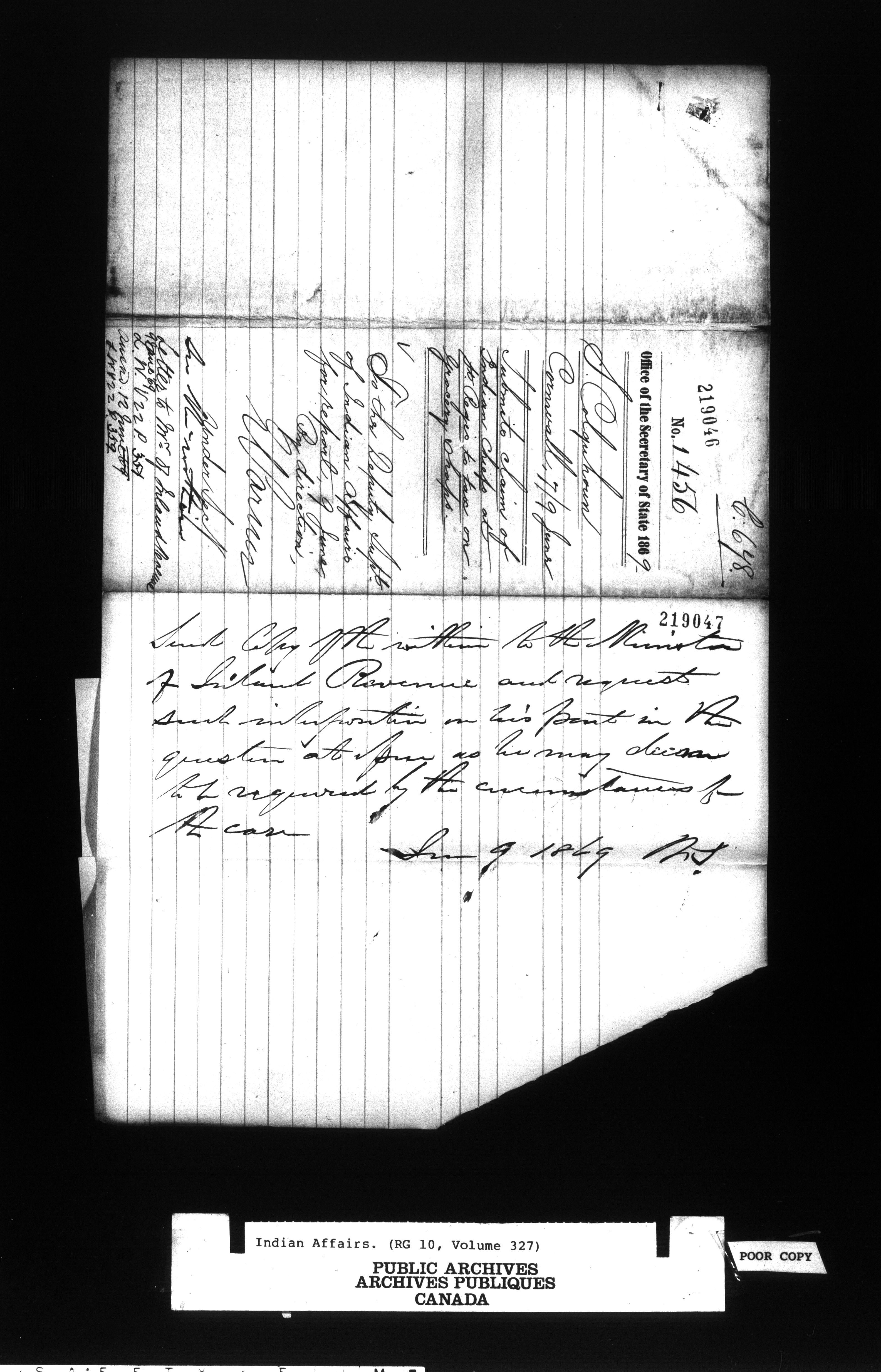 Office of the Deputy Superintendent General of Indian Affairs : Correspondence - 9579
