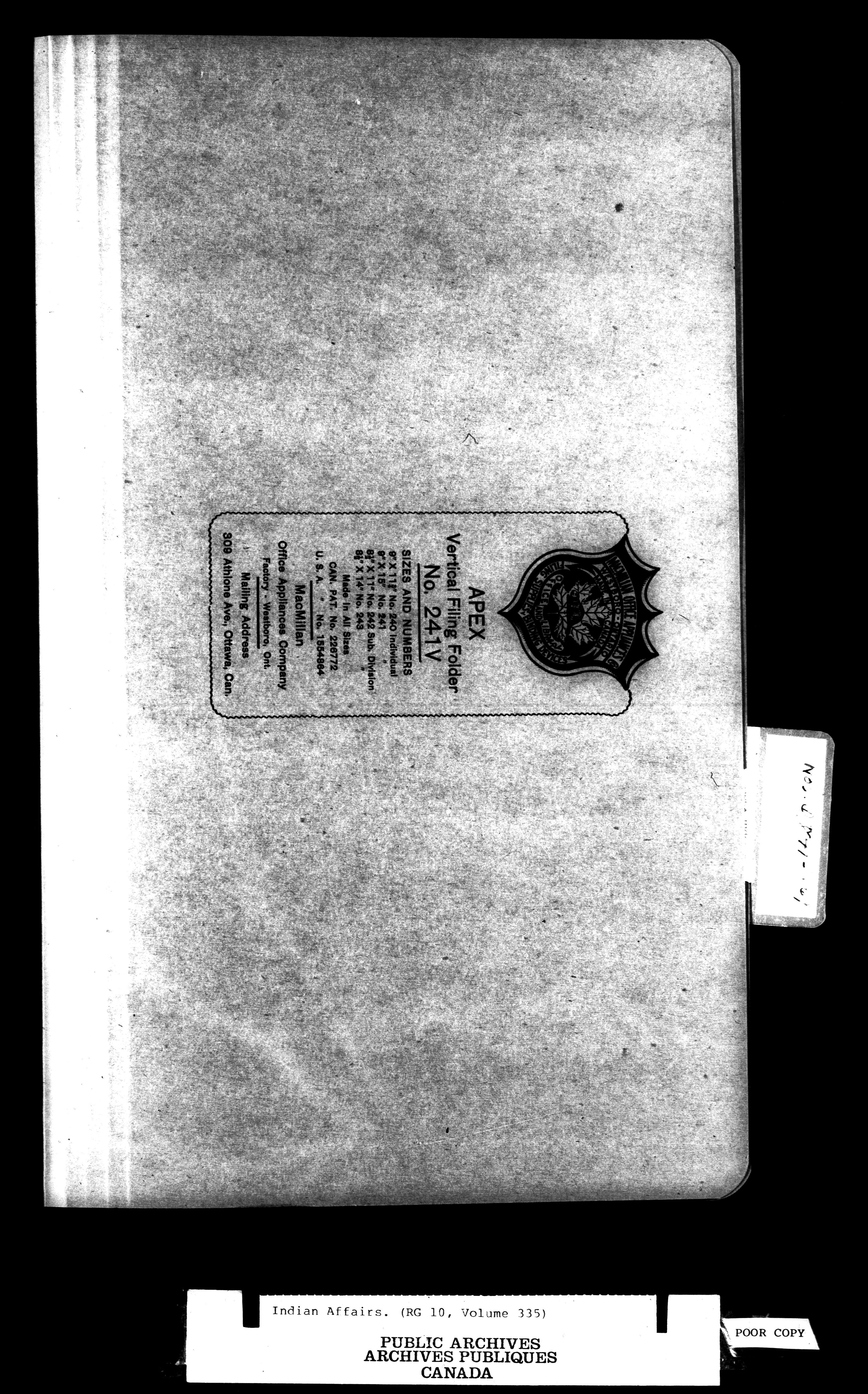 Office of the Deputy Superintendent General of Indian Affairs : Correspondence, 1862-1896 : C-9584