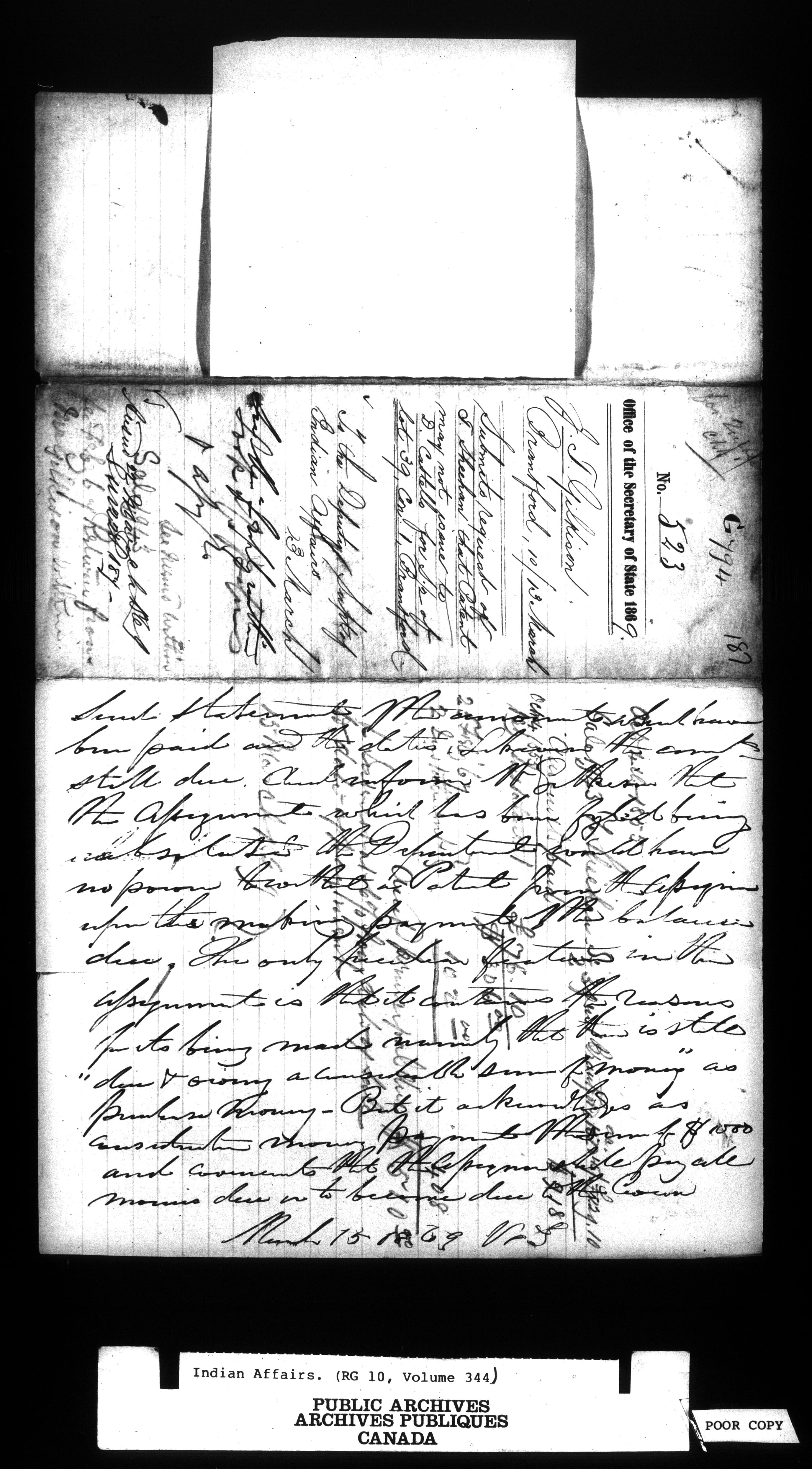 Office of the Deputy Superintendent General of Indian Affairs : Correspondence, 1862-1896 : C-9588