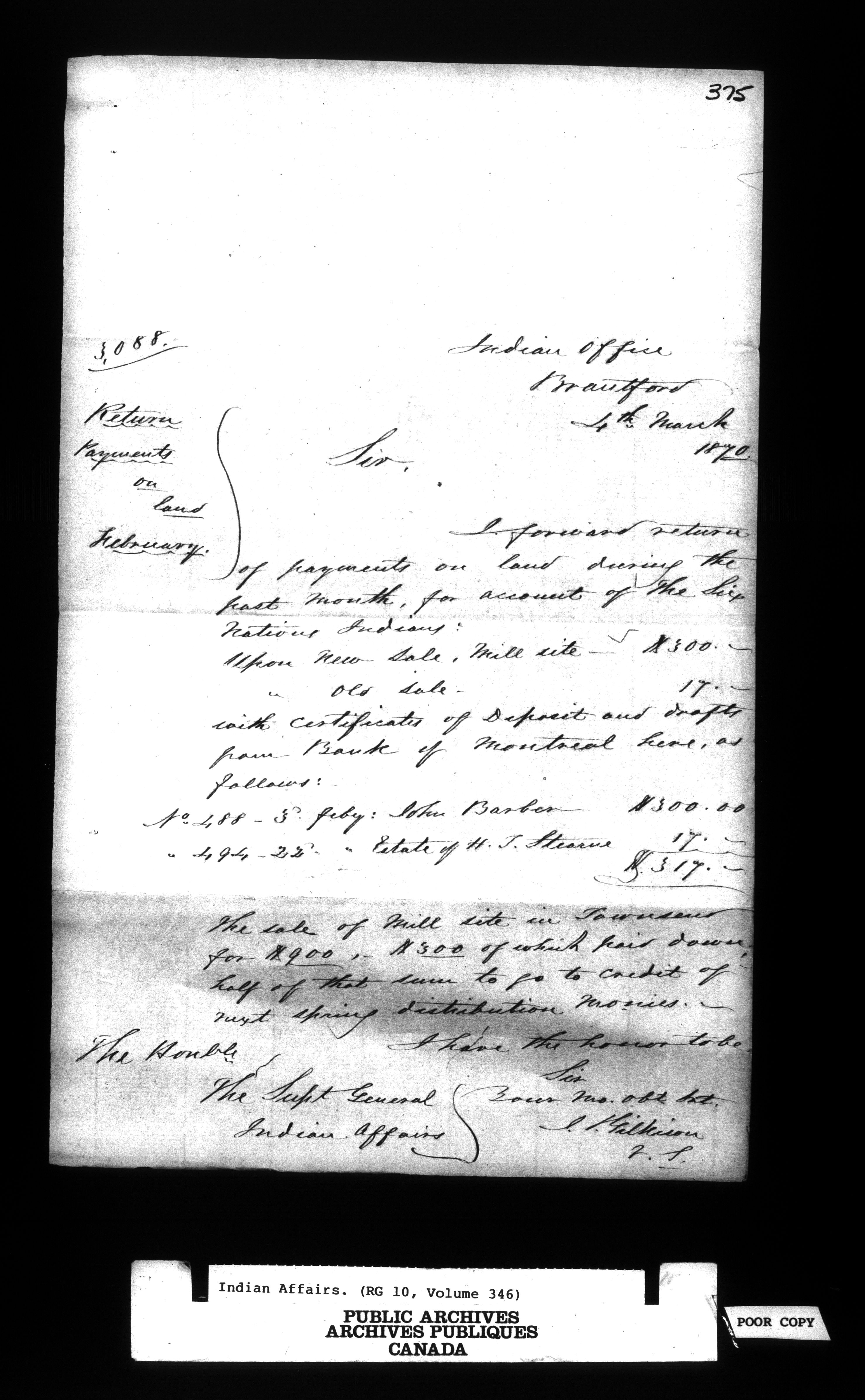 Office of the Deputy Superintendent General of Indian Affairs : Correspondence, 1862-1896 : C-9589