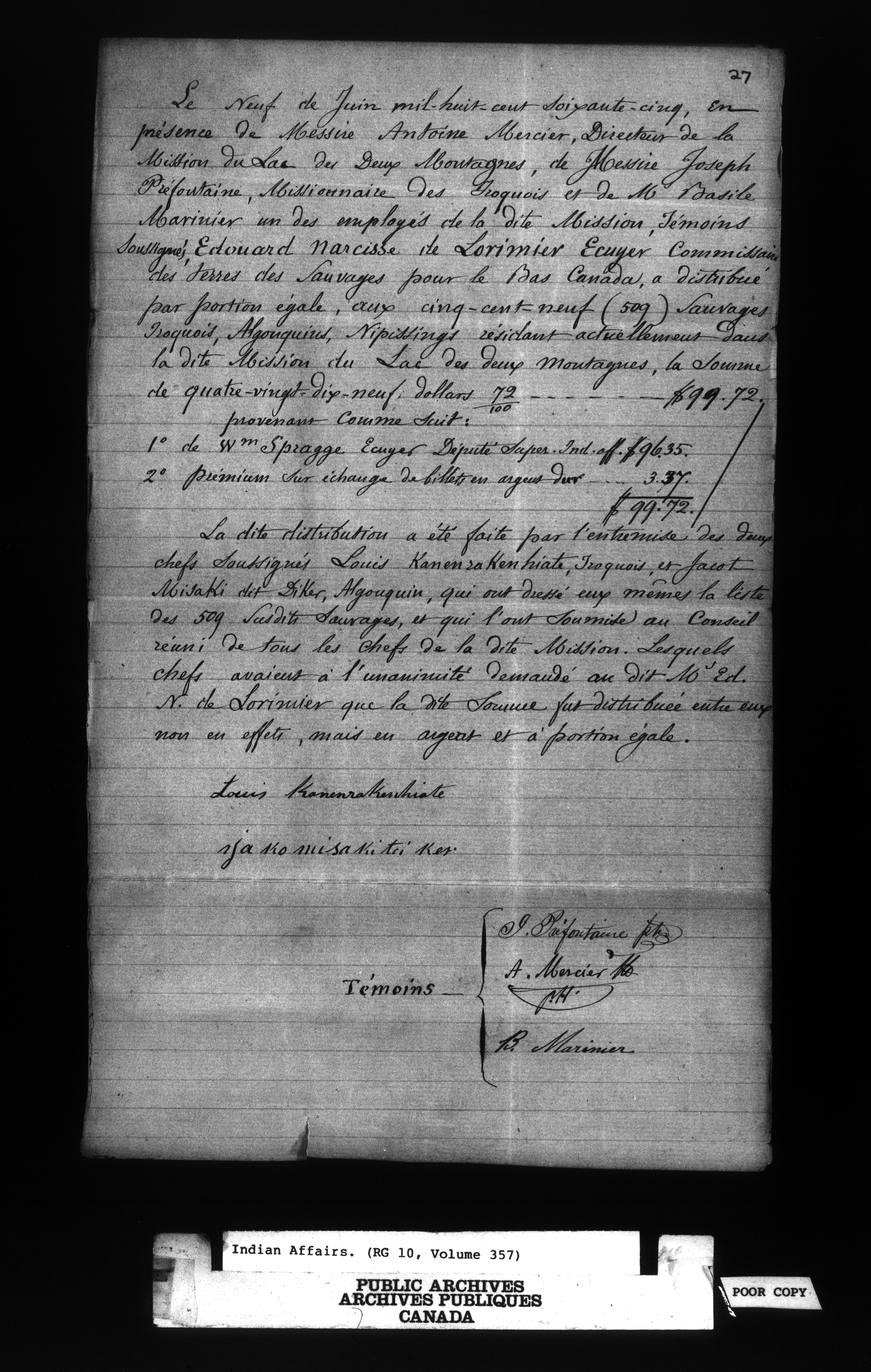 Office of the Deputy Superintendent General of Indian Affairs : Correspondence - 9593