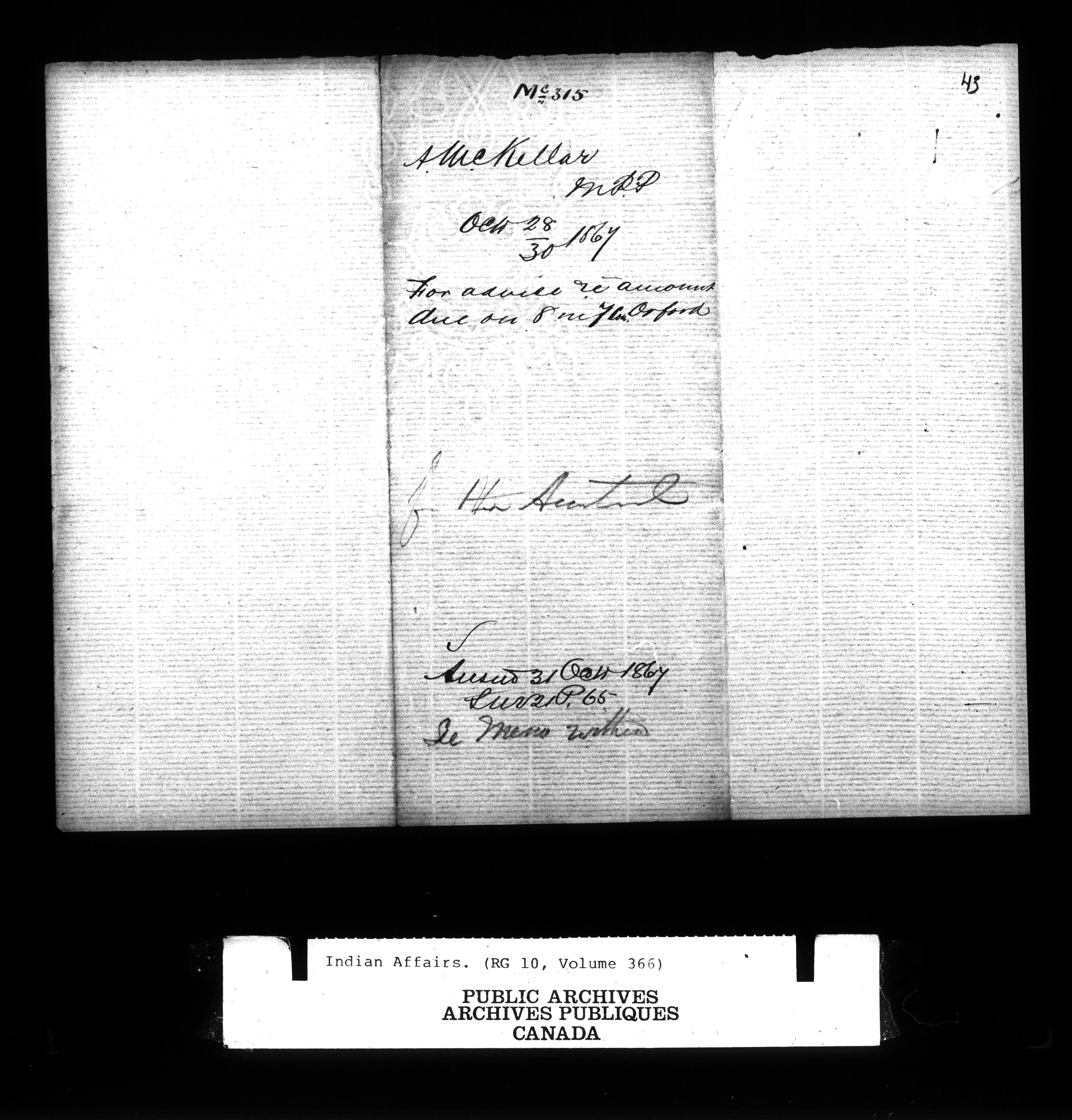 Office of the Deputy Superintendent General of Indian Affairs : Correspondence, 1862-1896 : C-9598