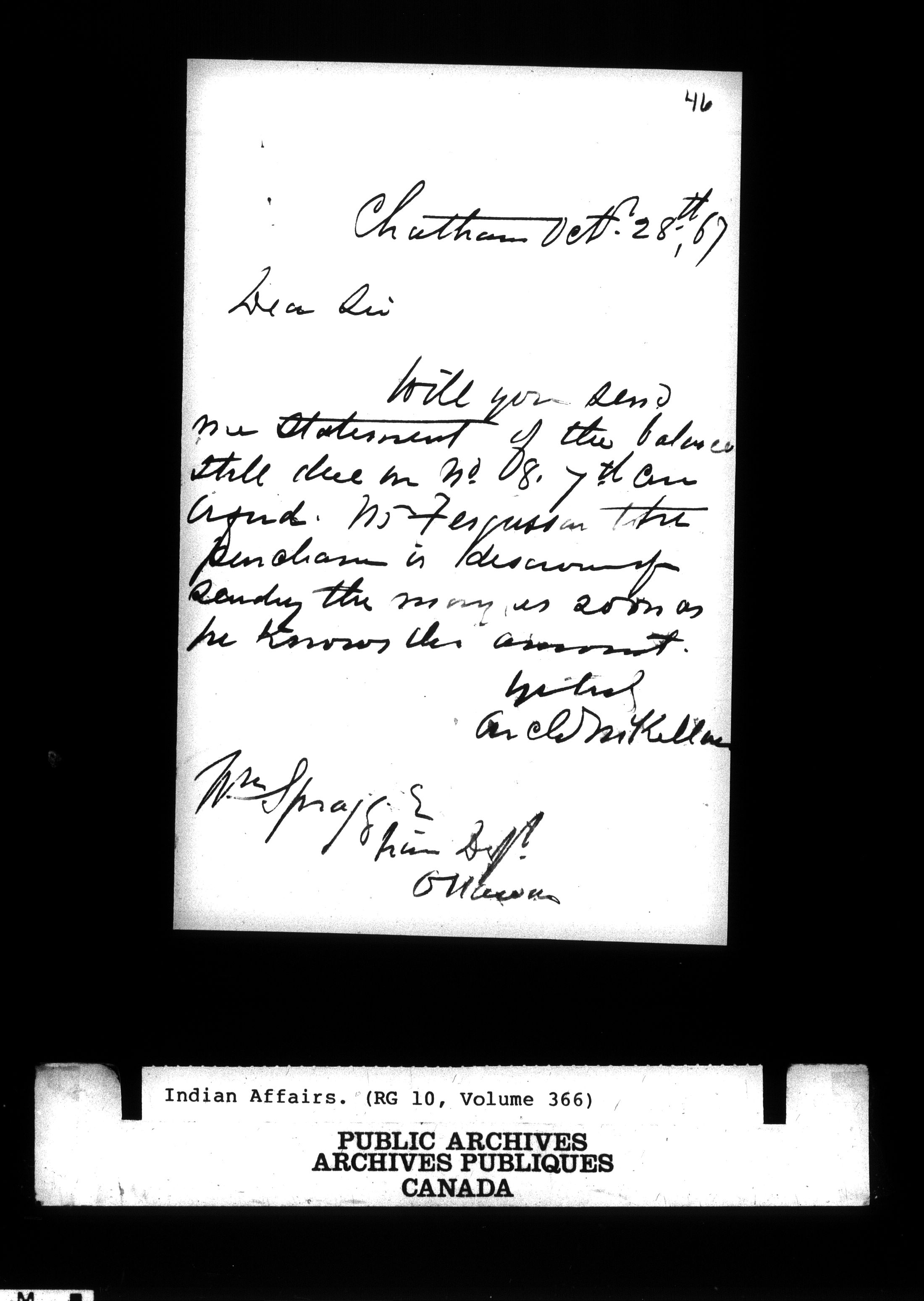 Office of the Deputy Superintendent General of Indian Affairs : Correspondence, 1862-1896 : C-9598