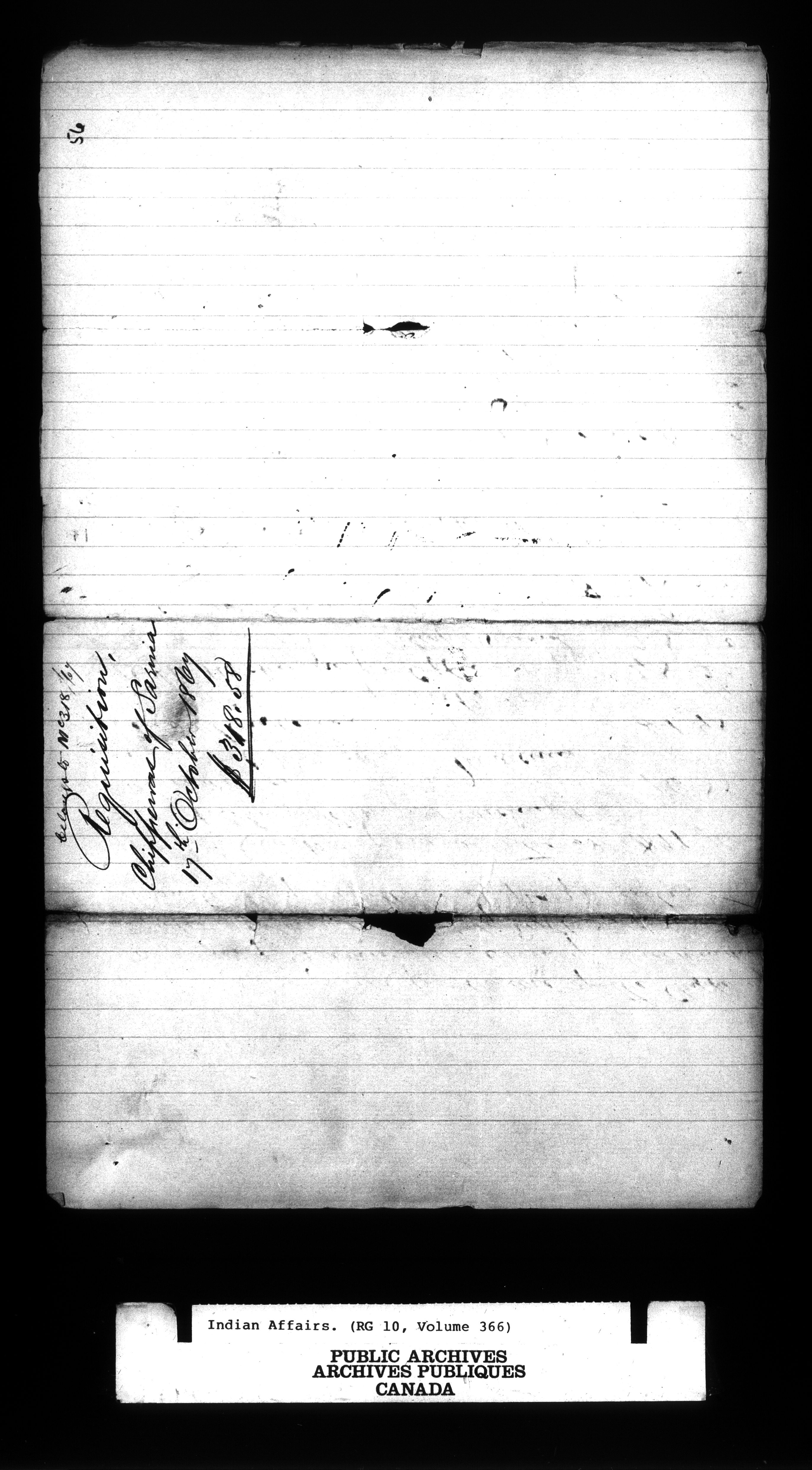 Office of the Deputy Superintendent General of Indian Affairs : Correspondence, 1862-1896 : C-9598
