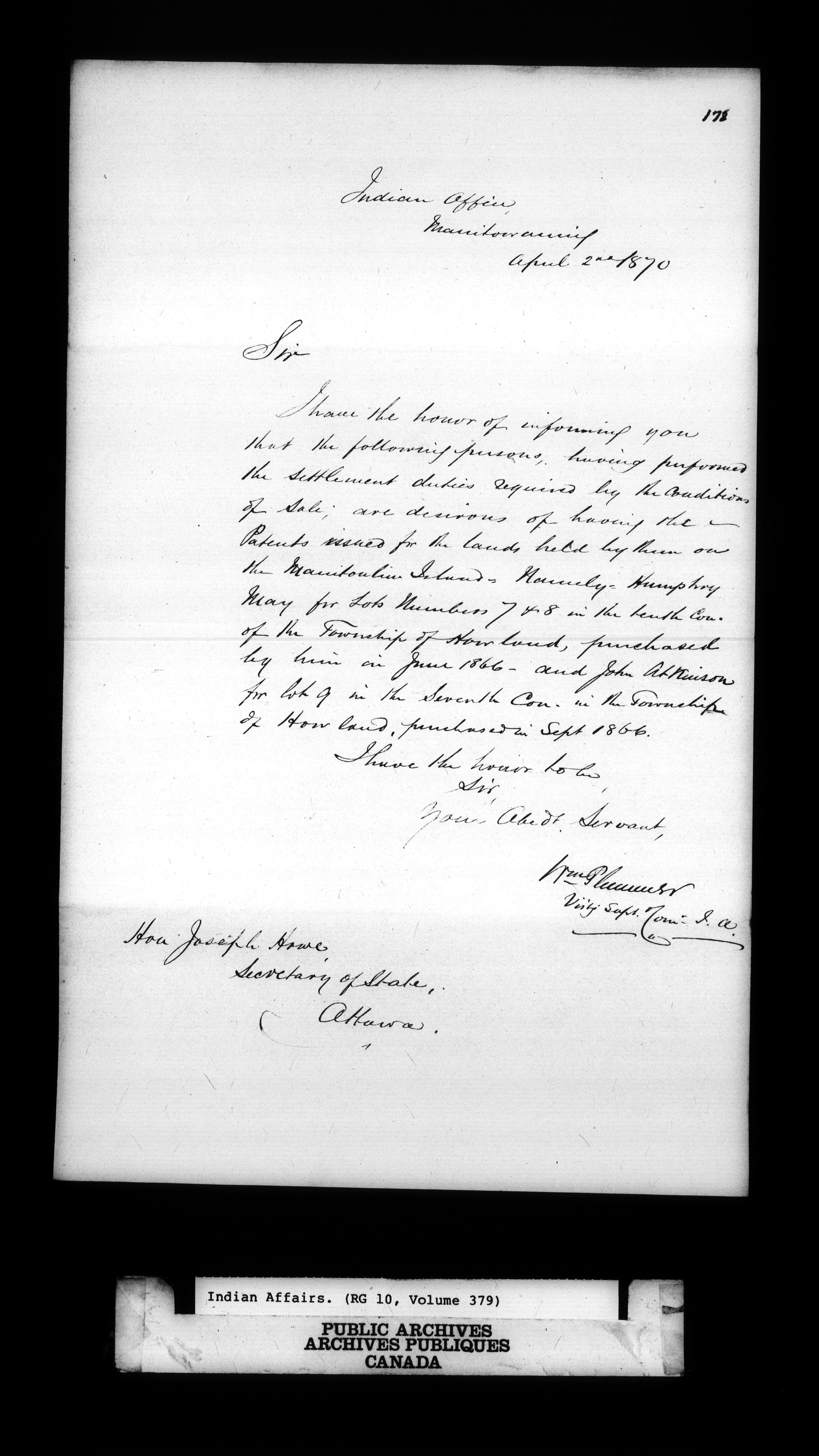 Office of the Deputy Superintendent General of Indian Affairs : Correspondence, 1862-1896 : C-9602
