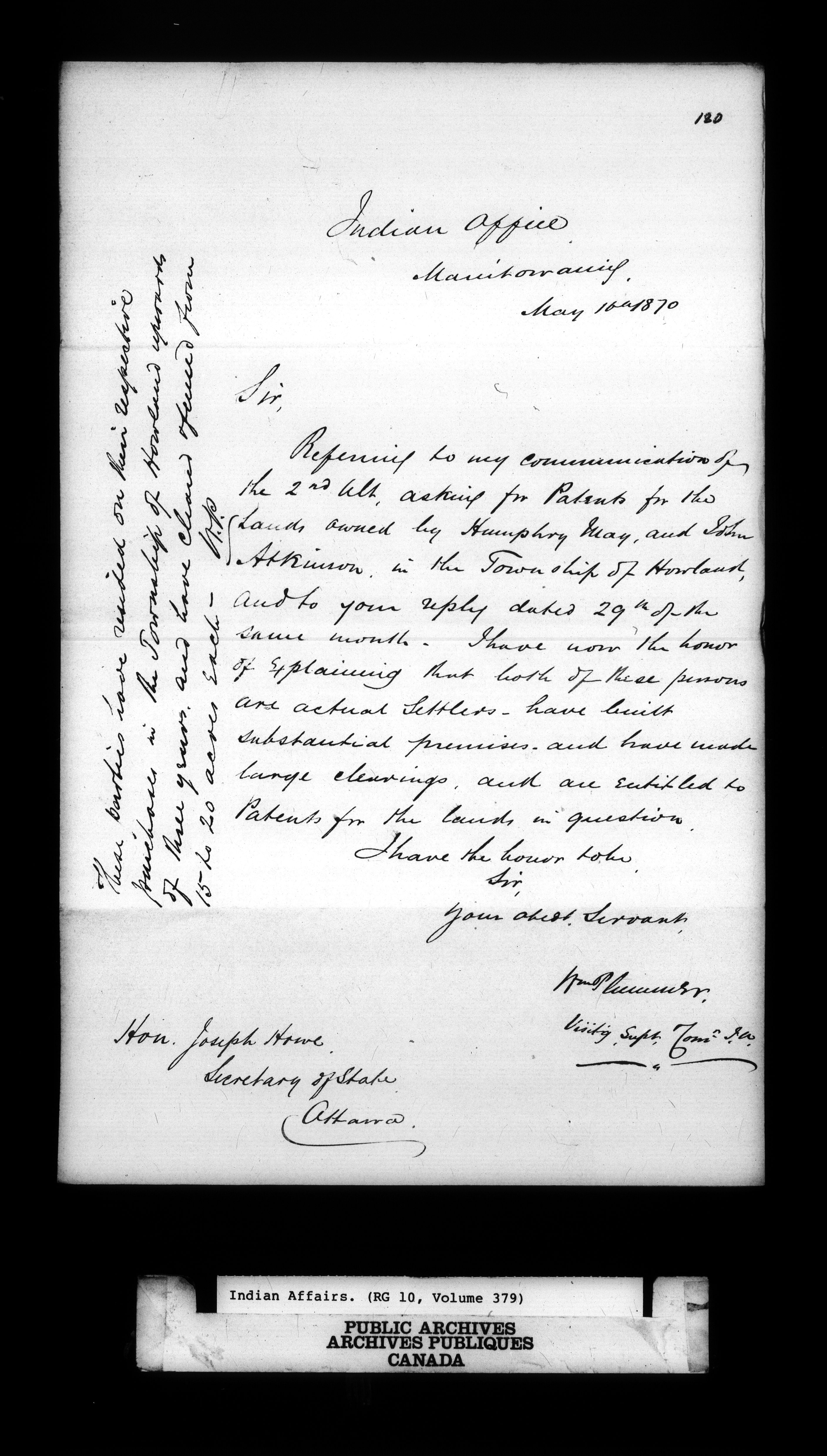 Office of the Deputy Superintendent General of Indian Affairs : Correspondence, 1862-1896 : C-9602