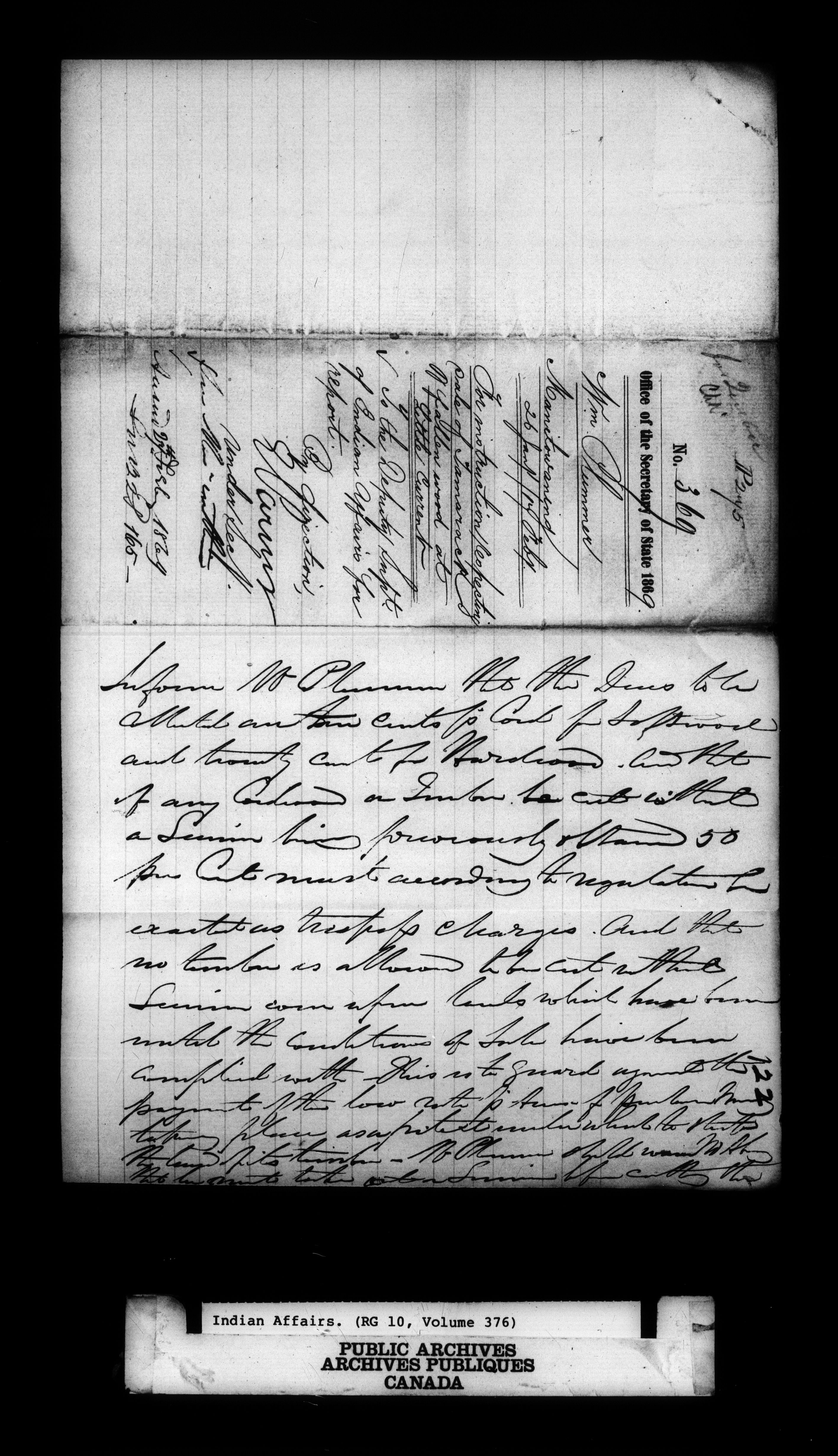 Office of the Deputy Superintendent General of Indian Affairs : Correspondence, 1862-1896 : C-9602