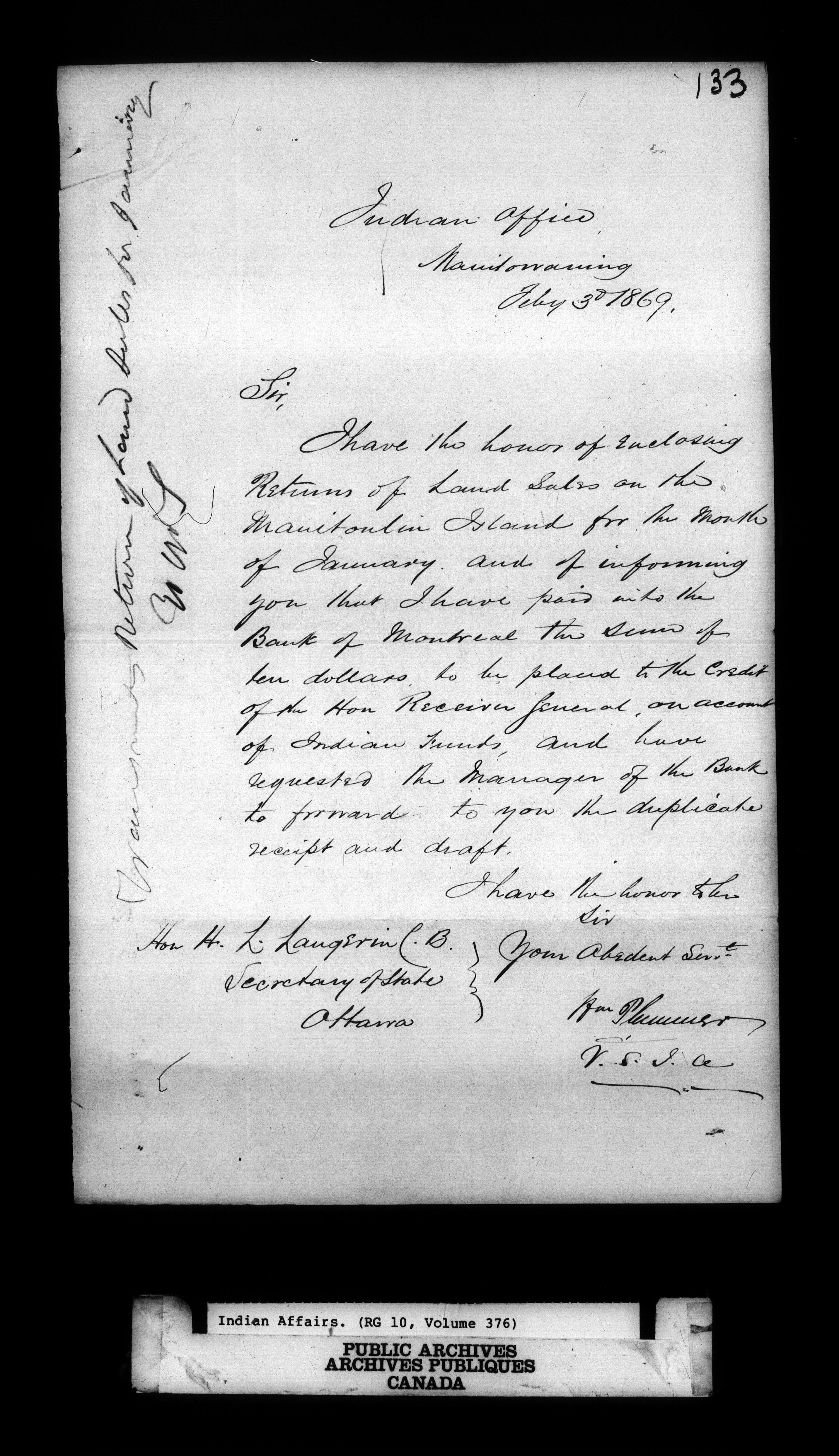 Office of the Deputy Superintendent General of Indian Affairs : Correspondence - 9602