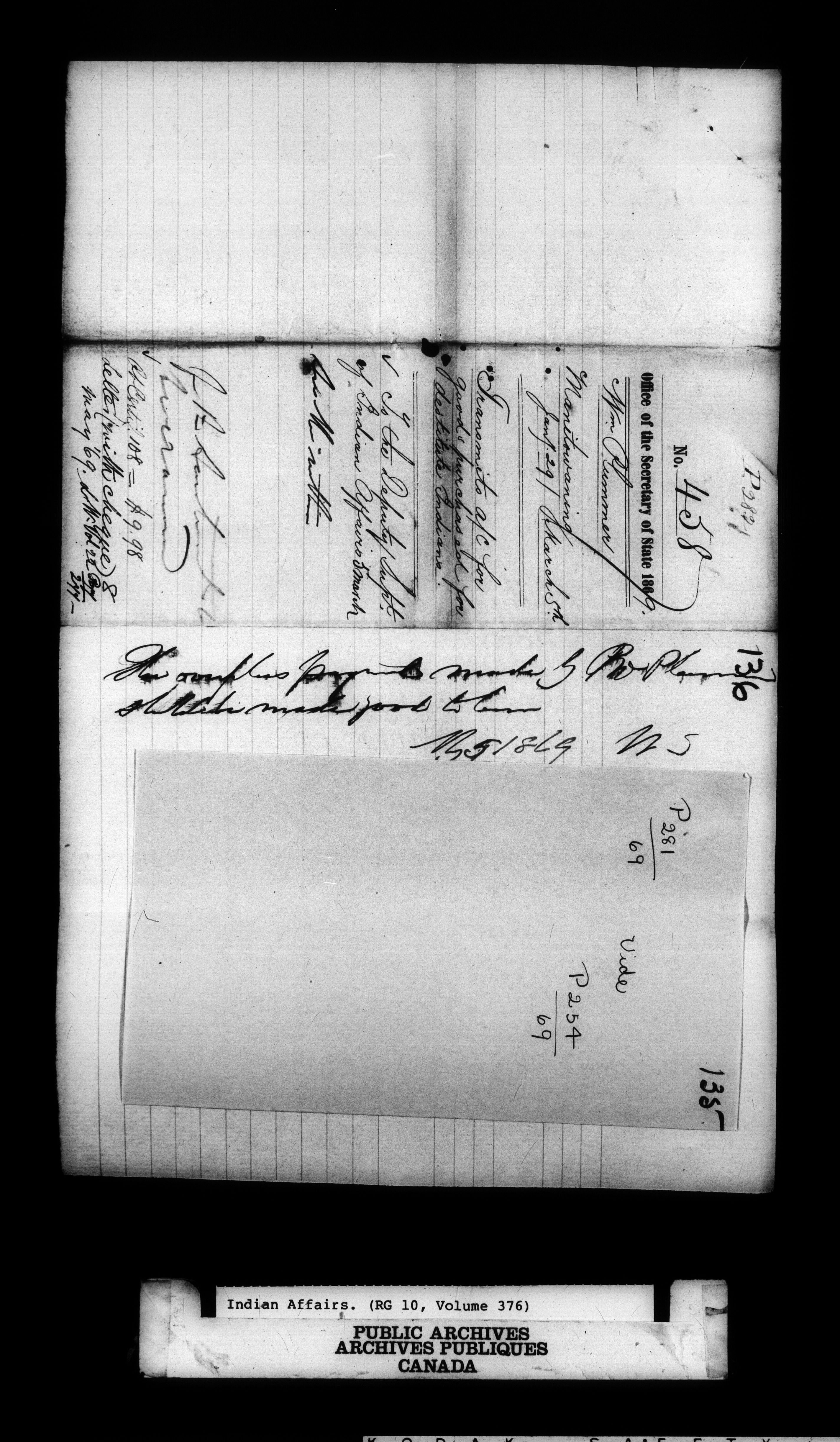 Office of the Deputy Superintendent General of Indian Affairs : Correspondence, 1862-1896 : C-9602