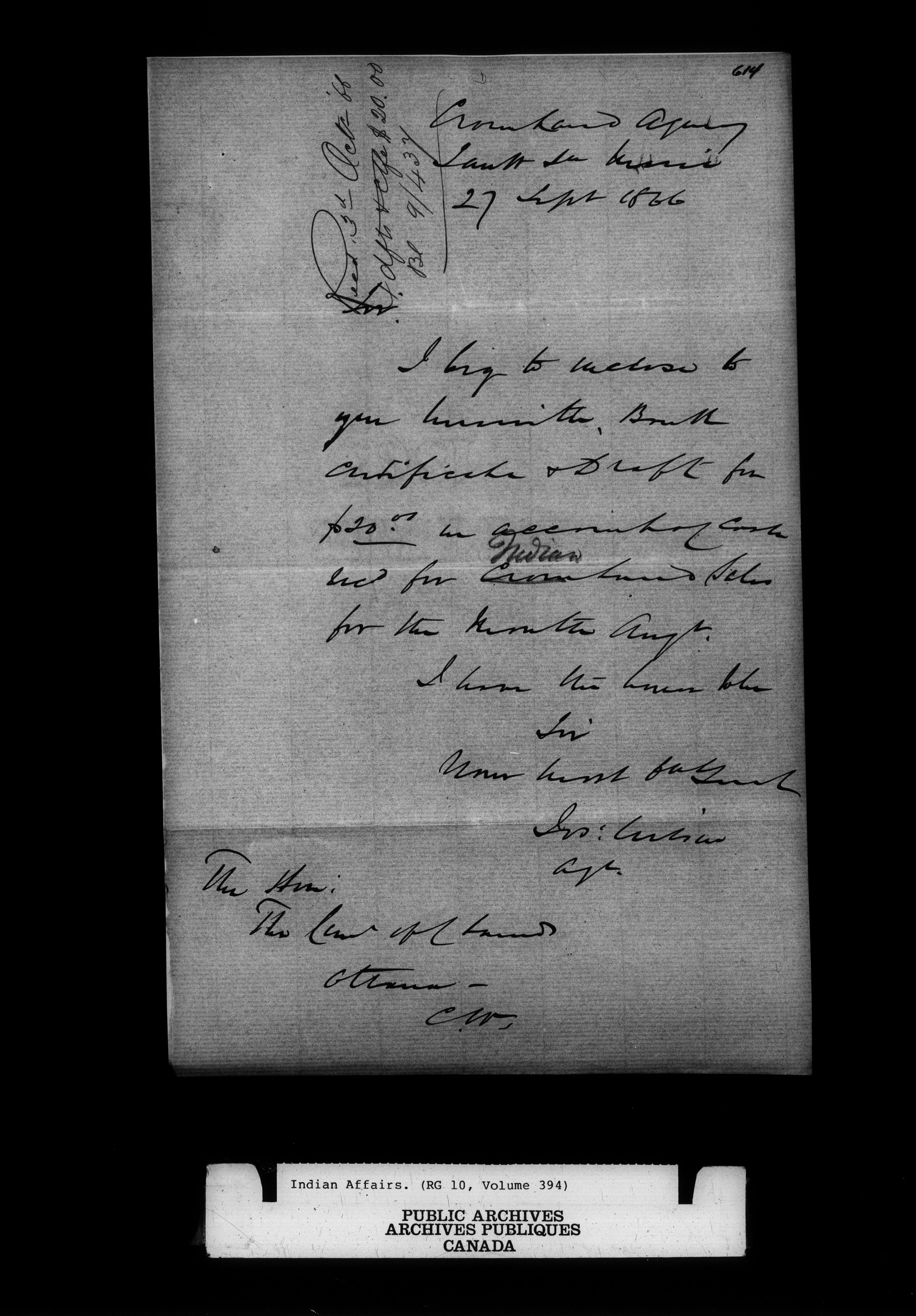 Office of the Deputy Superintendent General of Indian Affairs : Correspondence - 9609