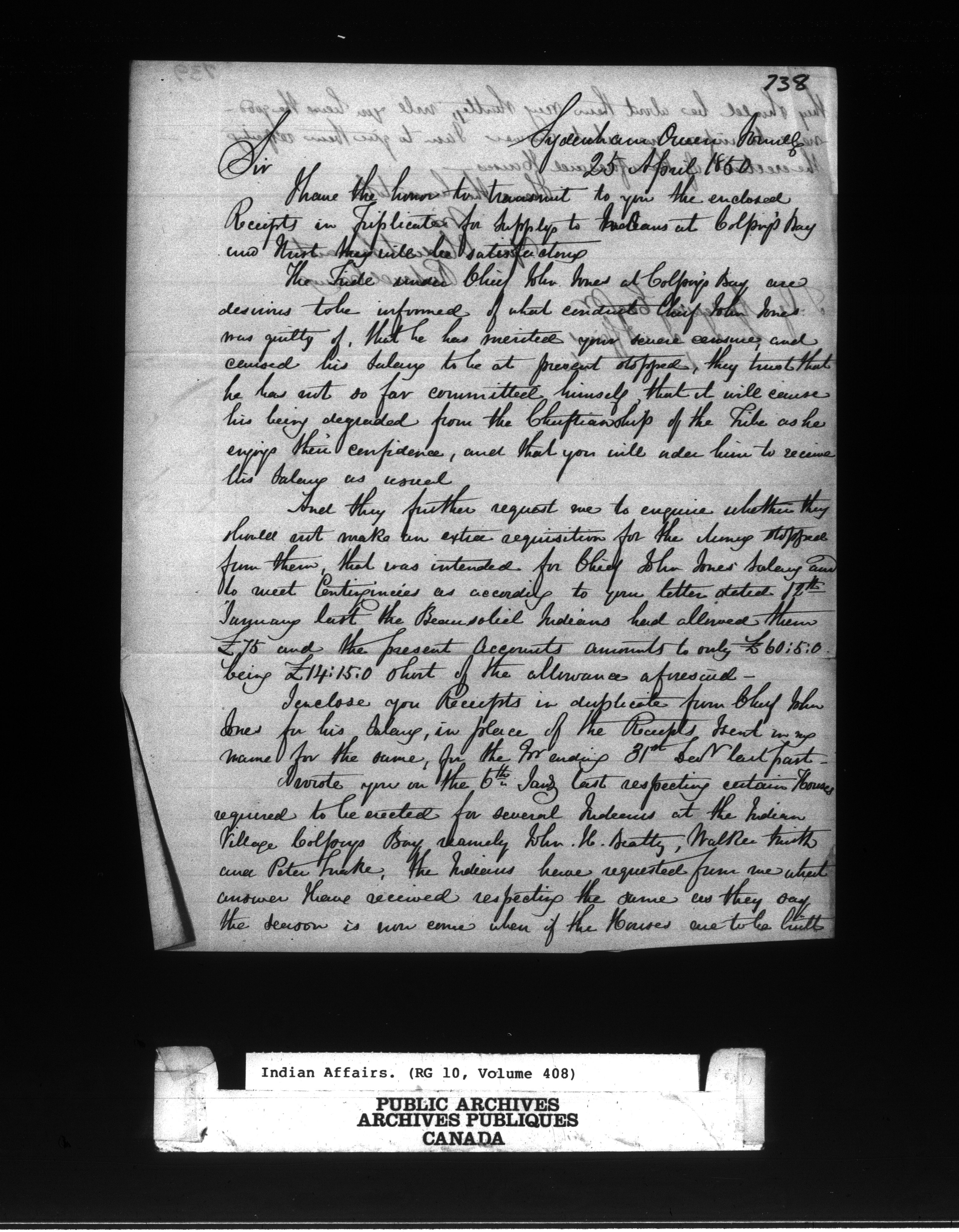 Department of Indian Affairs, Toronto office of the Central Superintendency : correspondence : C-9615