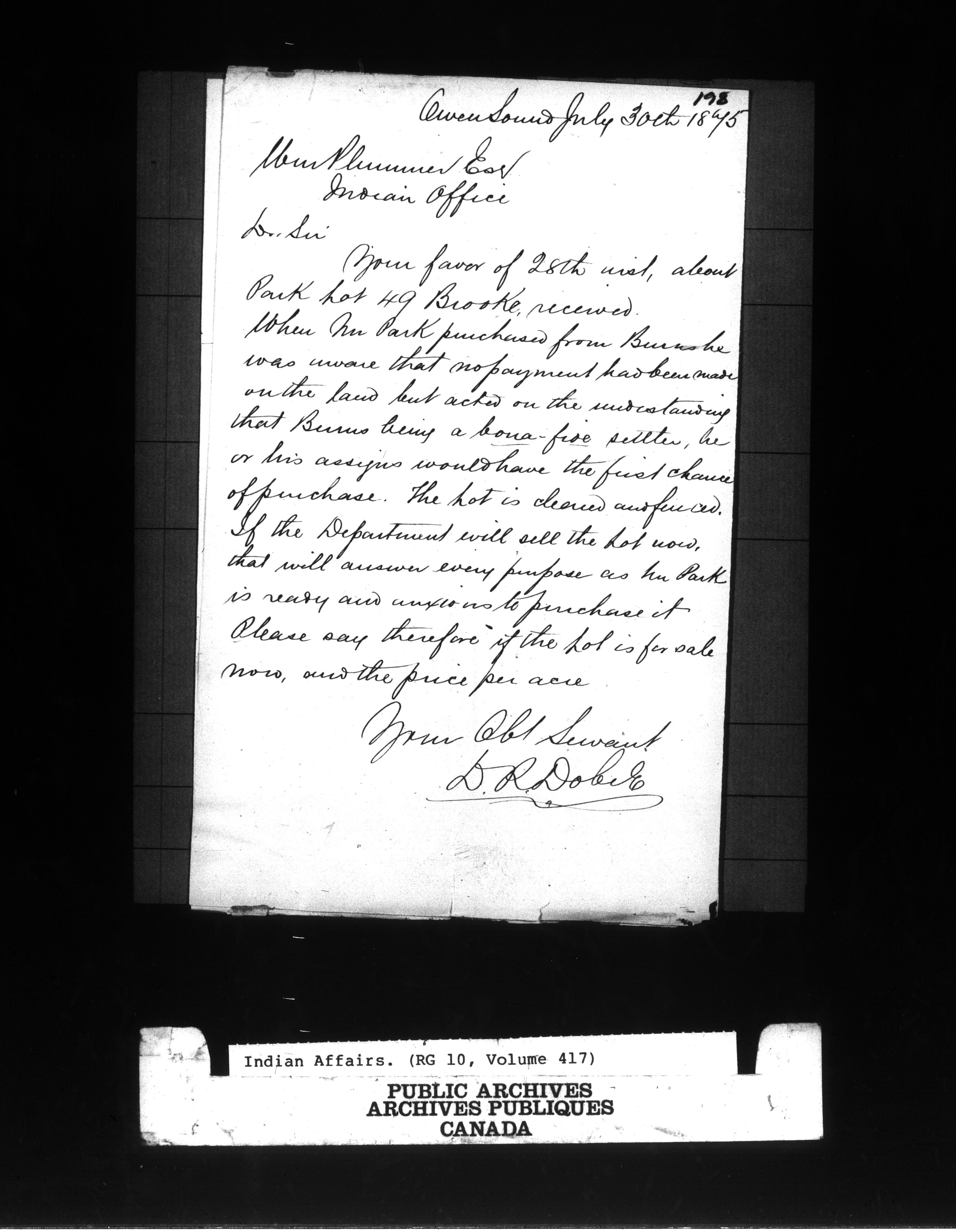 Department of Indian Affairs, Toronto office of the Central Superintendency : correspondence : C-9620