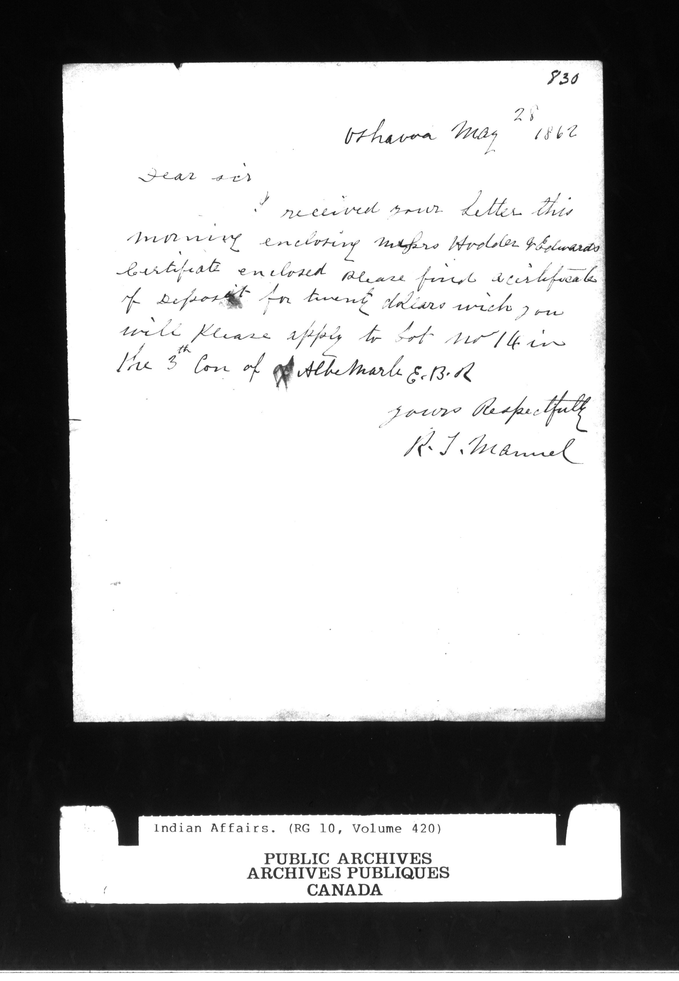 Department of Indian Affairs, Toronto office of the Central Superintendency : correspondence : C-9624