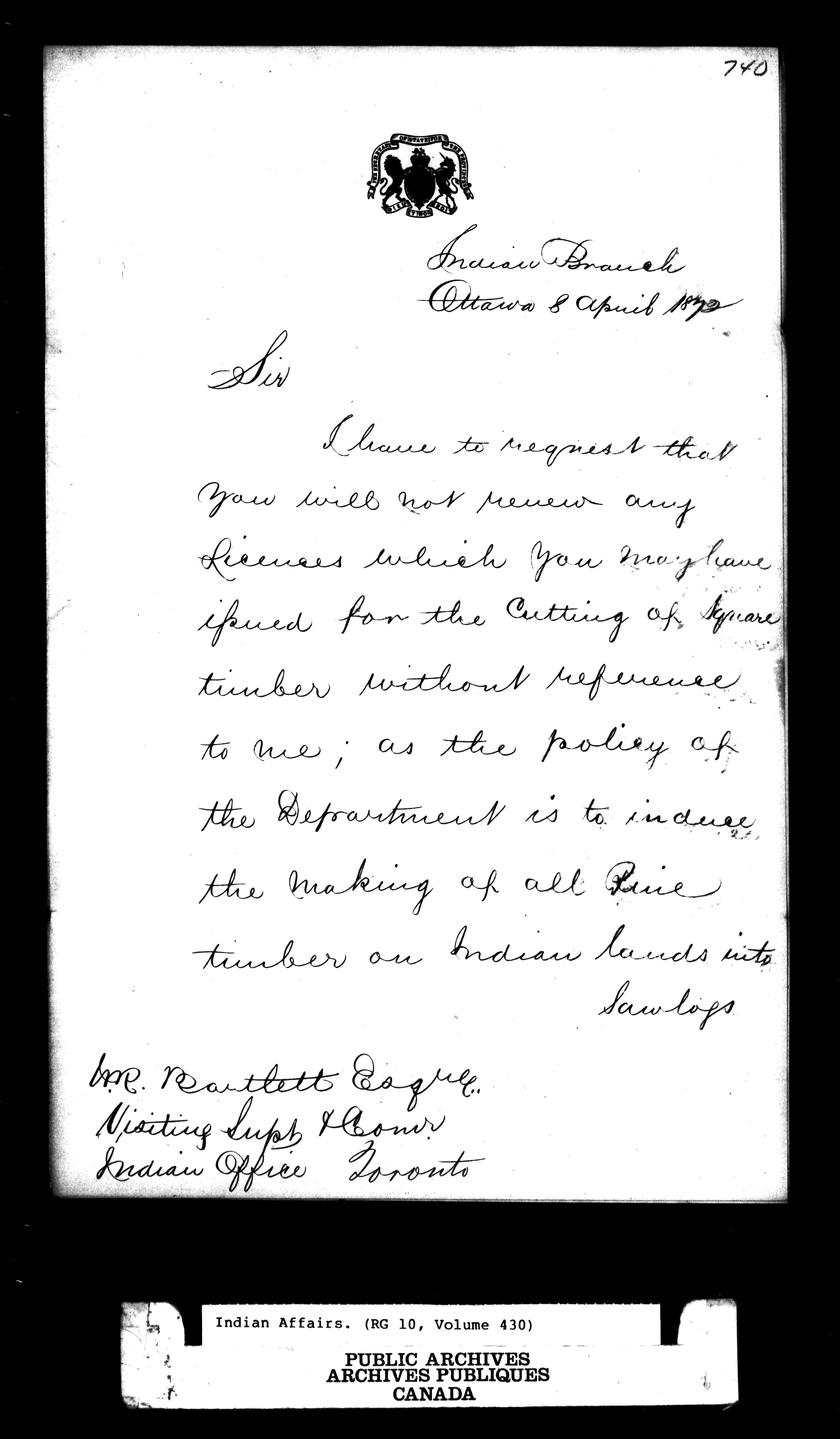 Toronto office of the Central Superintendency, 1845-1877 - 9630