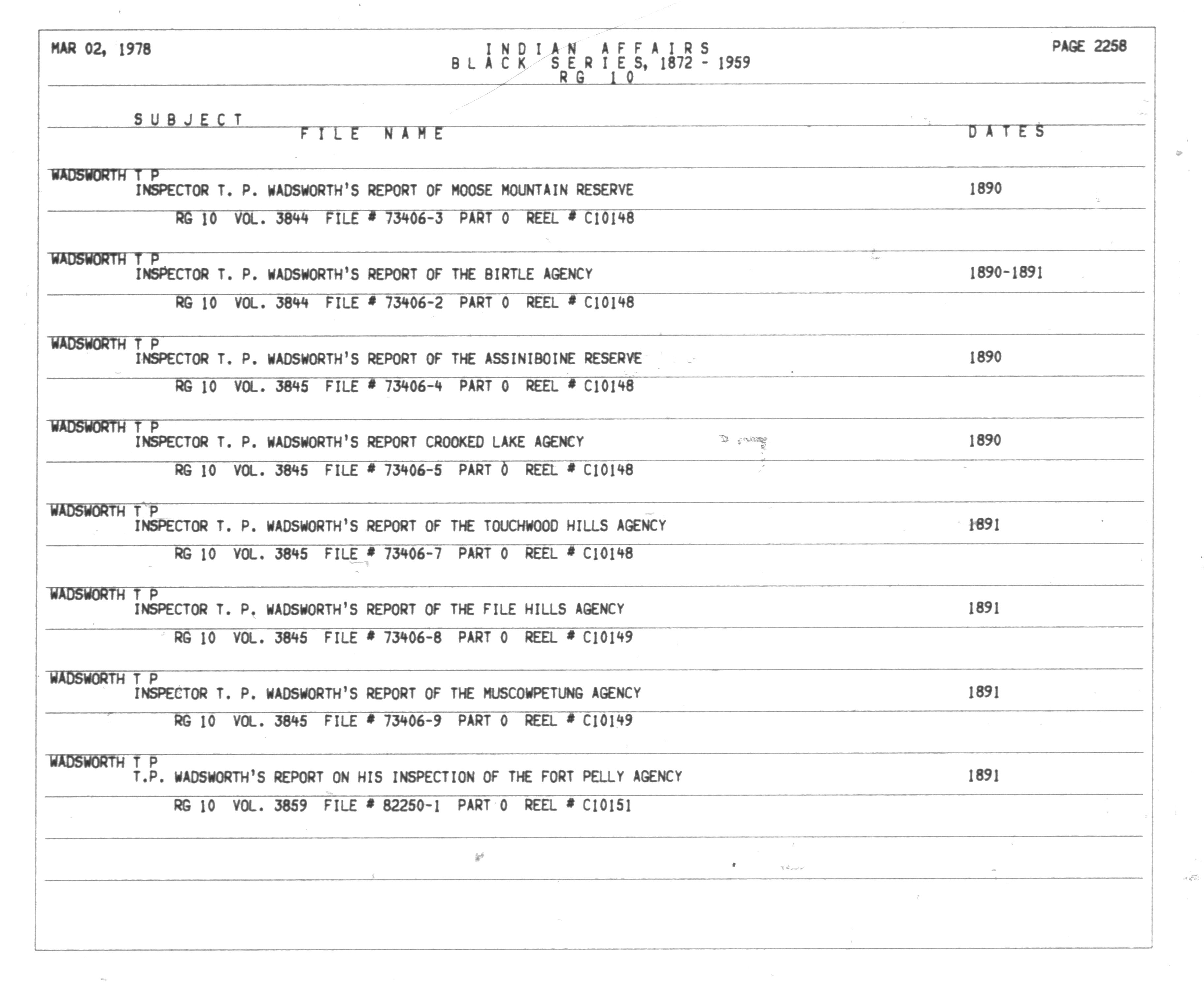 Department of Indian Affairs : Central Registry Files, Black Series - Index 1872-1959 - 9640