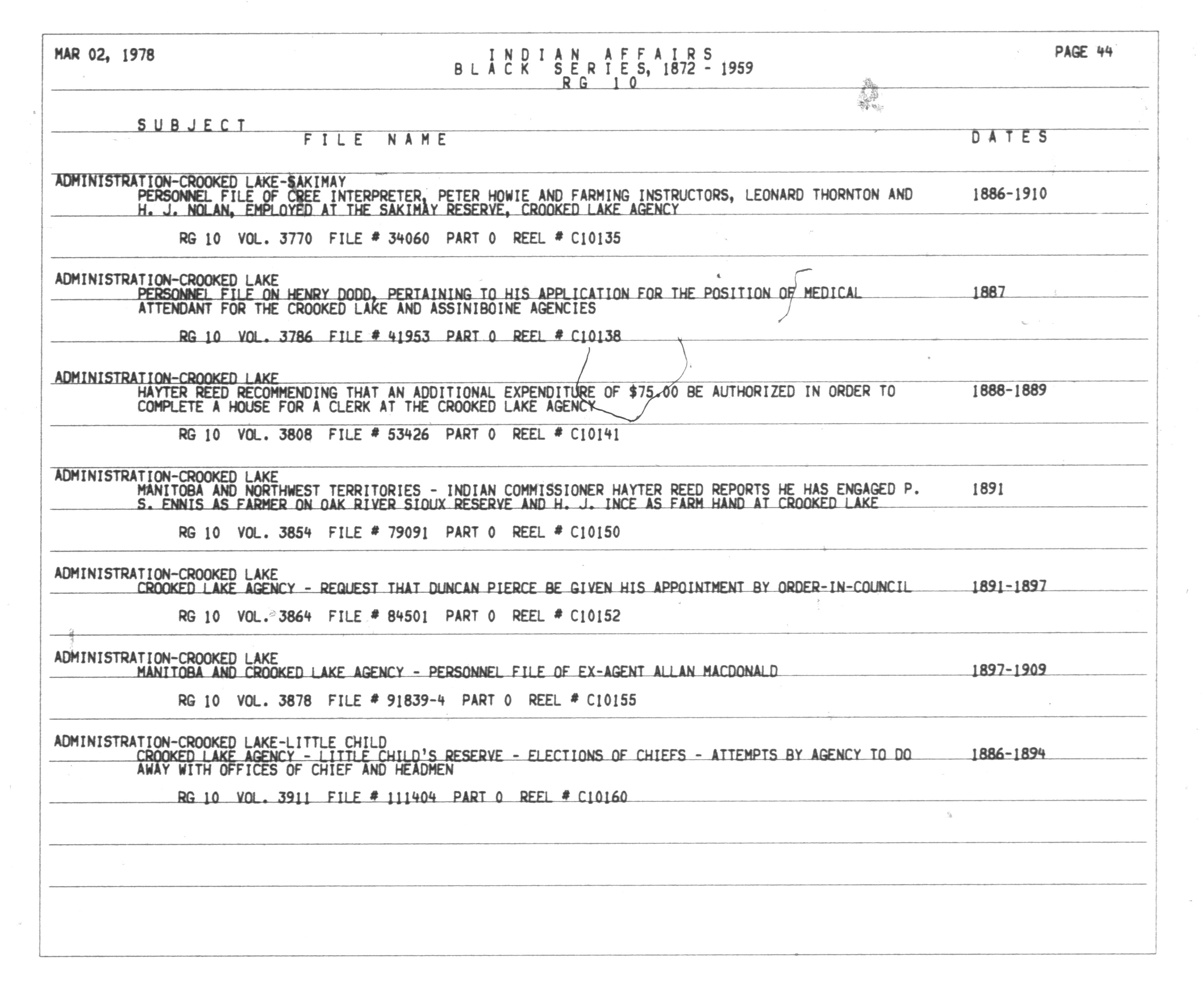 Department of Indian Affairs : Central Registry Files, Black Series - Index 1872-1959 - 9640