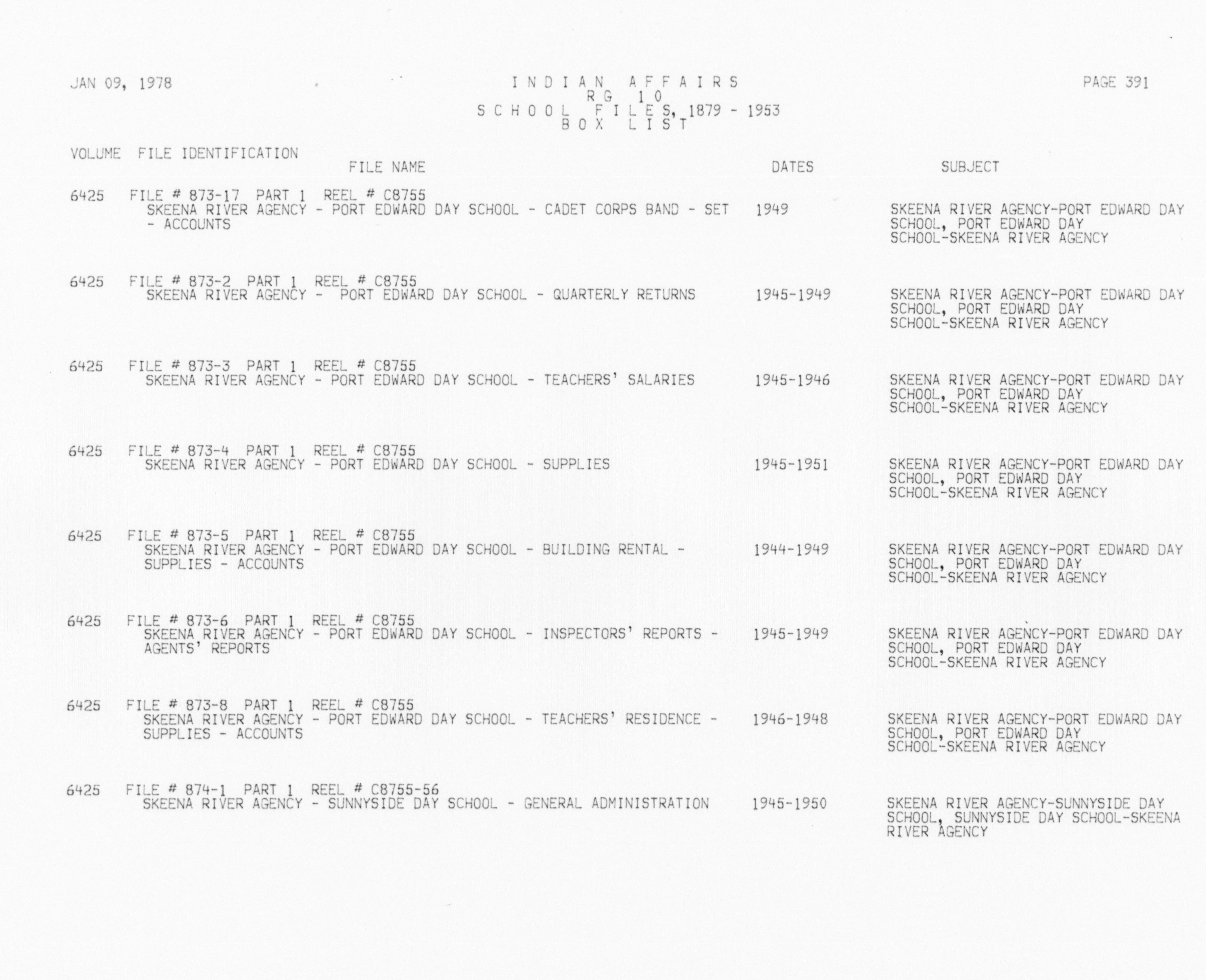 Department of Indian Affairs : School files series, Box List 1879-1953 - 9642