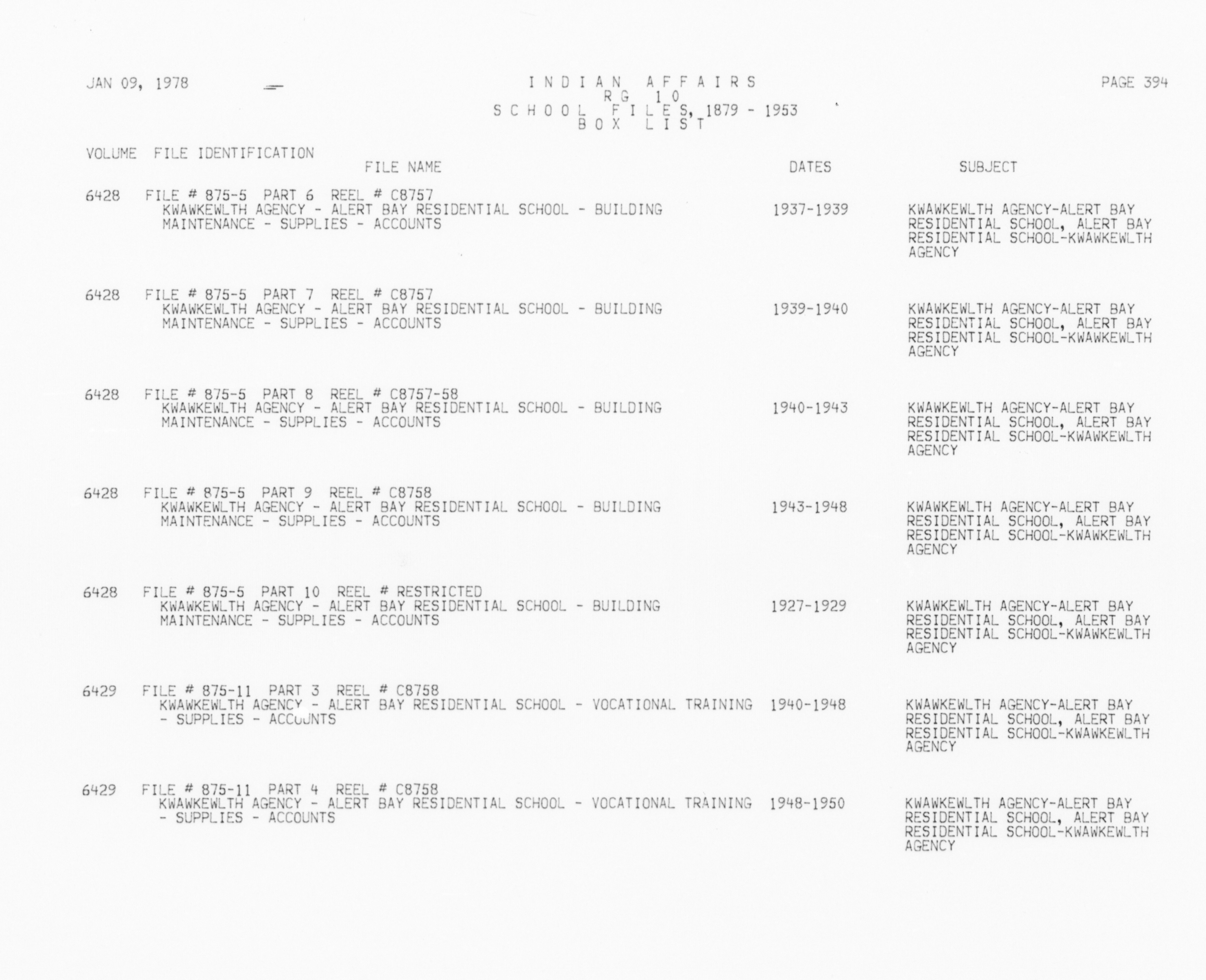 Department of Indian Affairs : School files series, Box List 1879-1953 - 9642