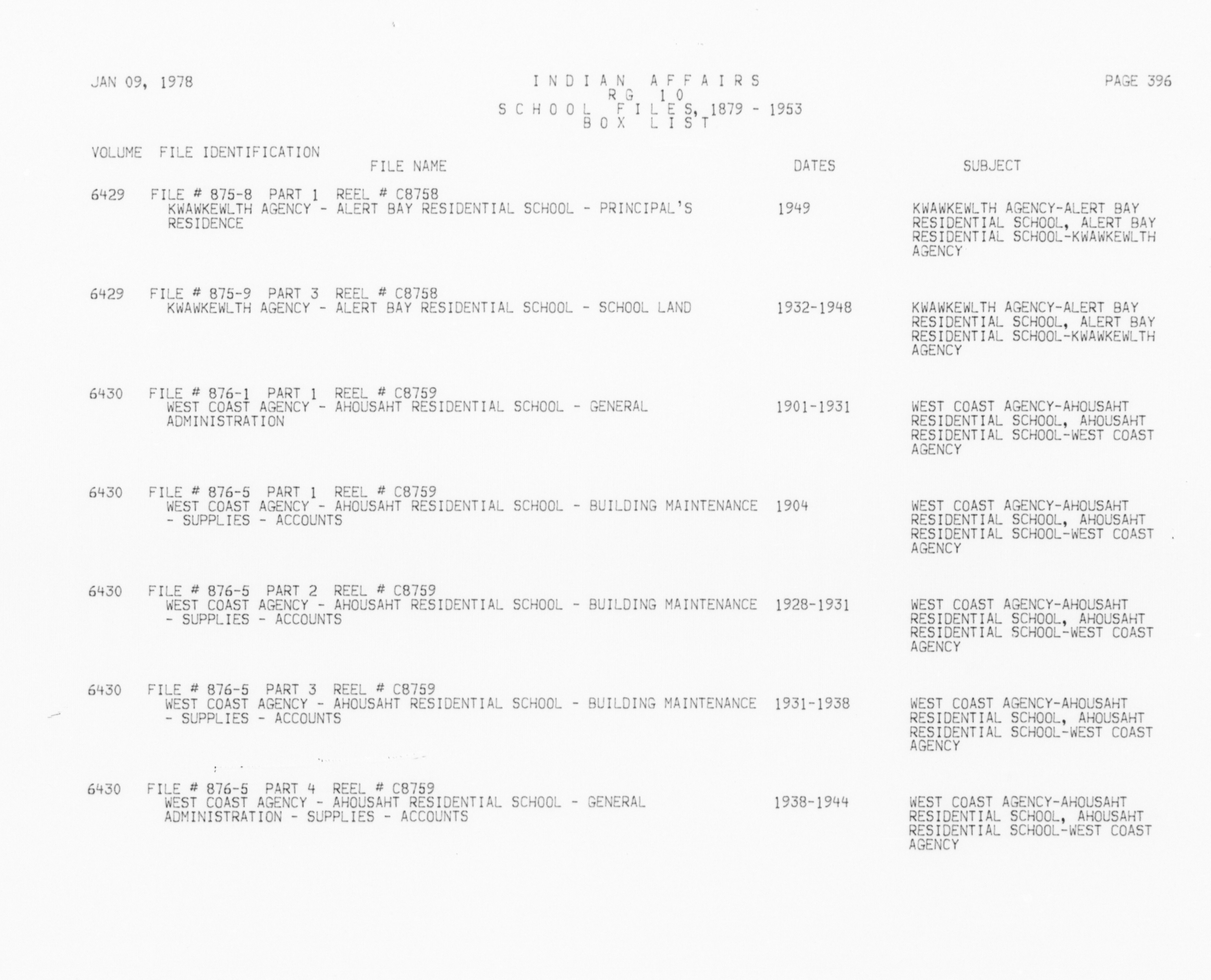 Department of Indian Affairs : School files series, Box List 1879-1953 - 9642