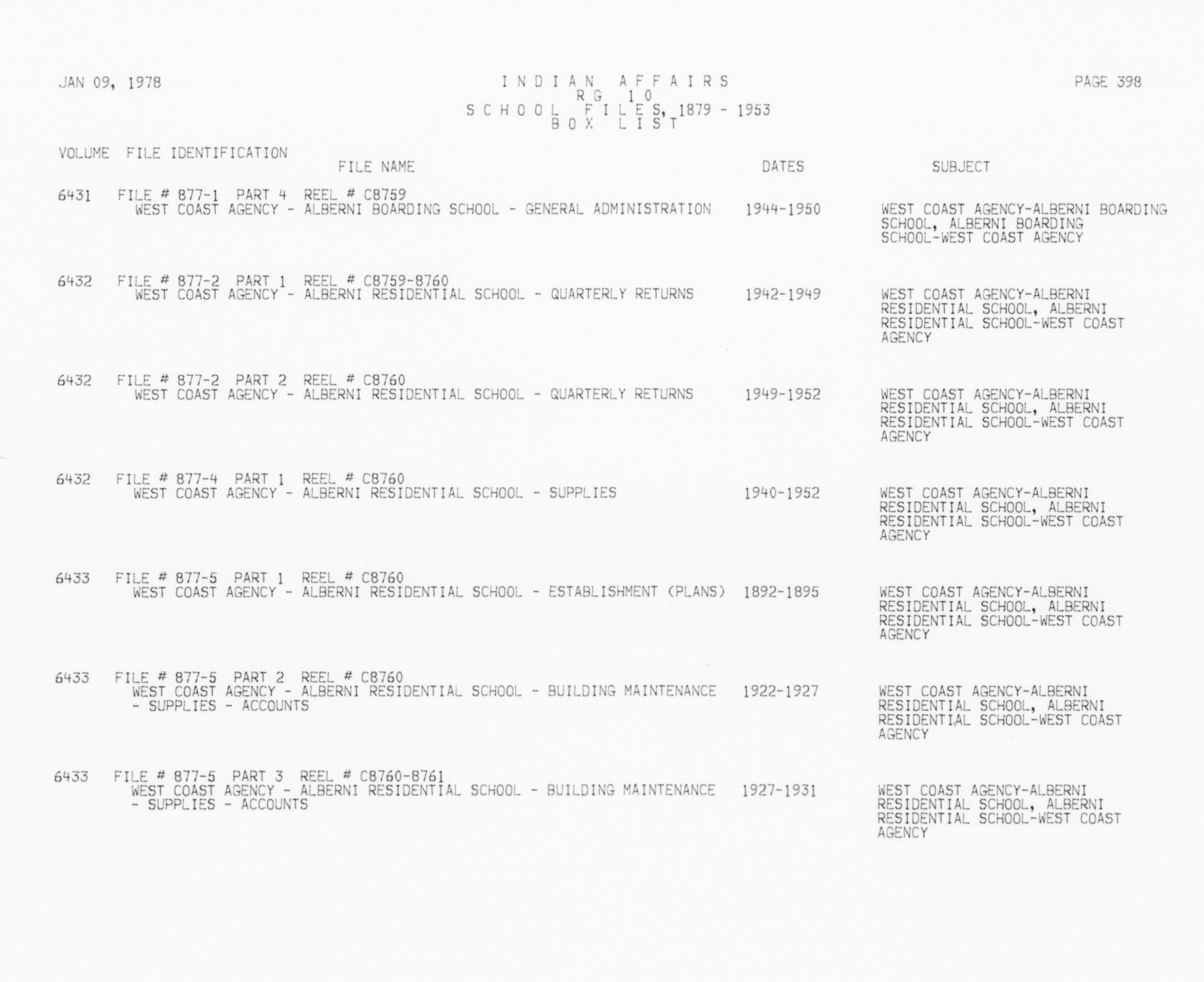 Department of Indian Affairs : School files series, Box List 1879-1953 - 9642