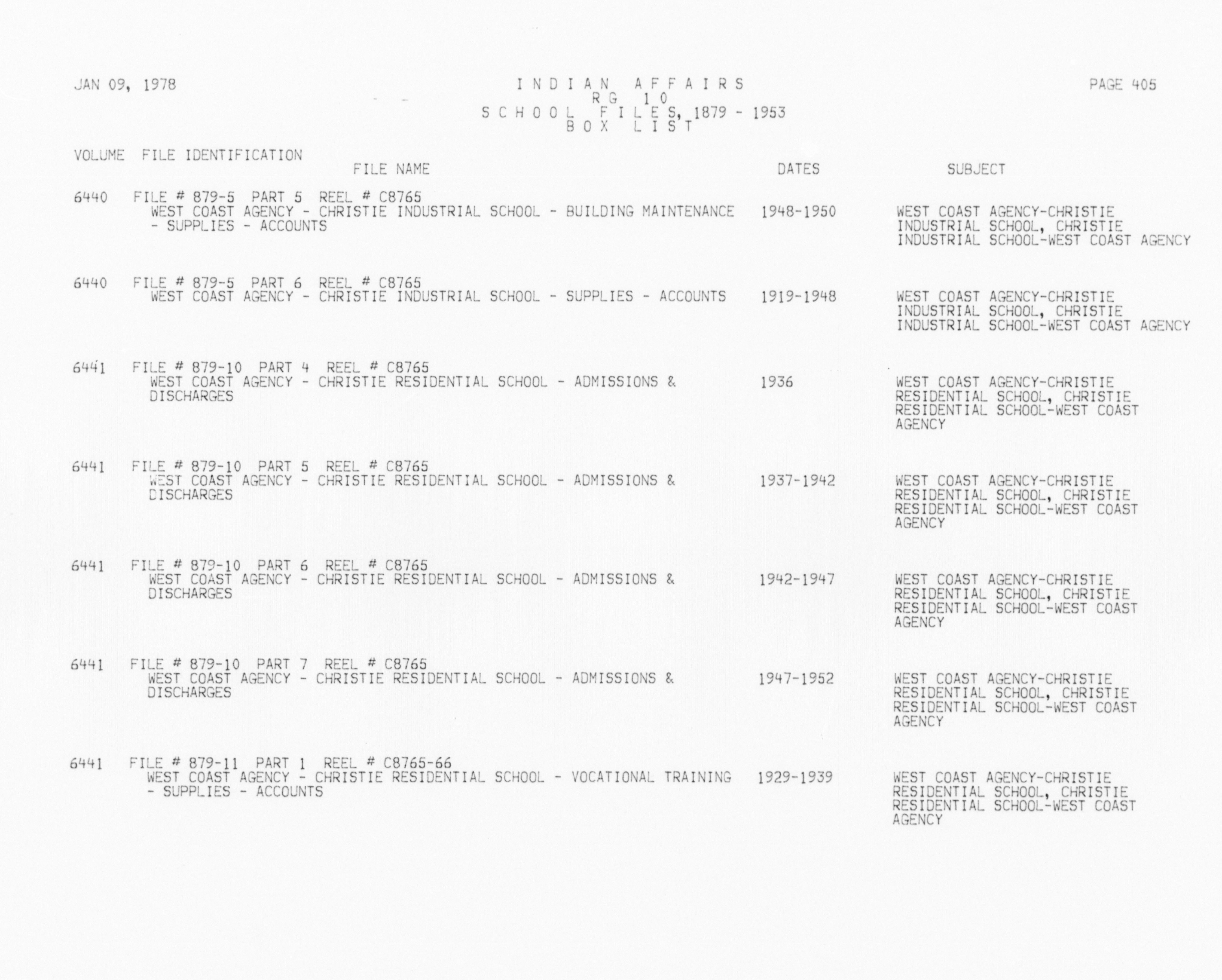 Department of Indian Affairs : School files series, Box List 1879-1953 - 9642