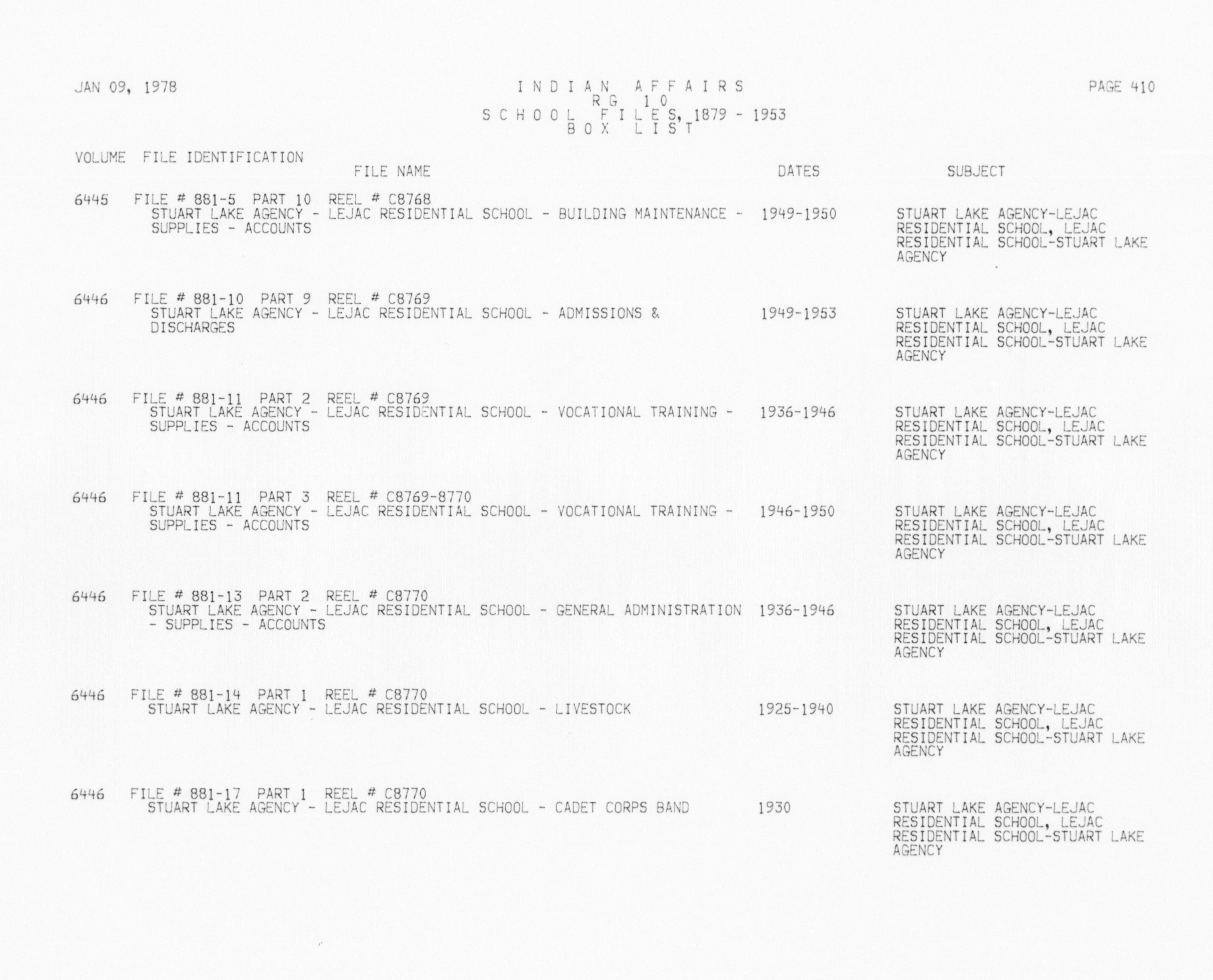 Department of Indian Affairs : School files series, Box List 1879-1953 - 9642