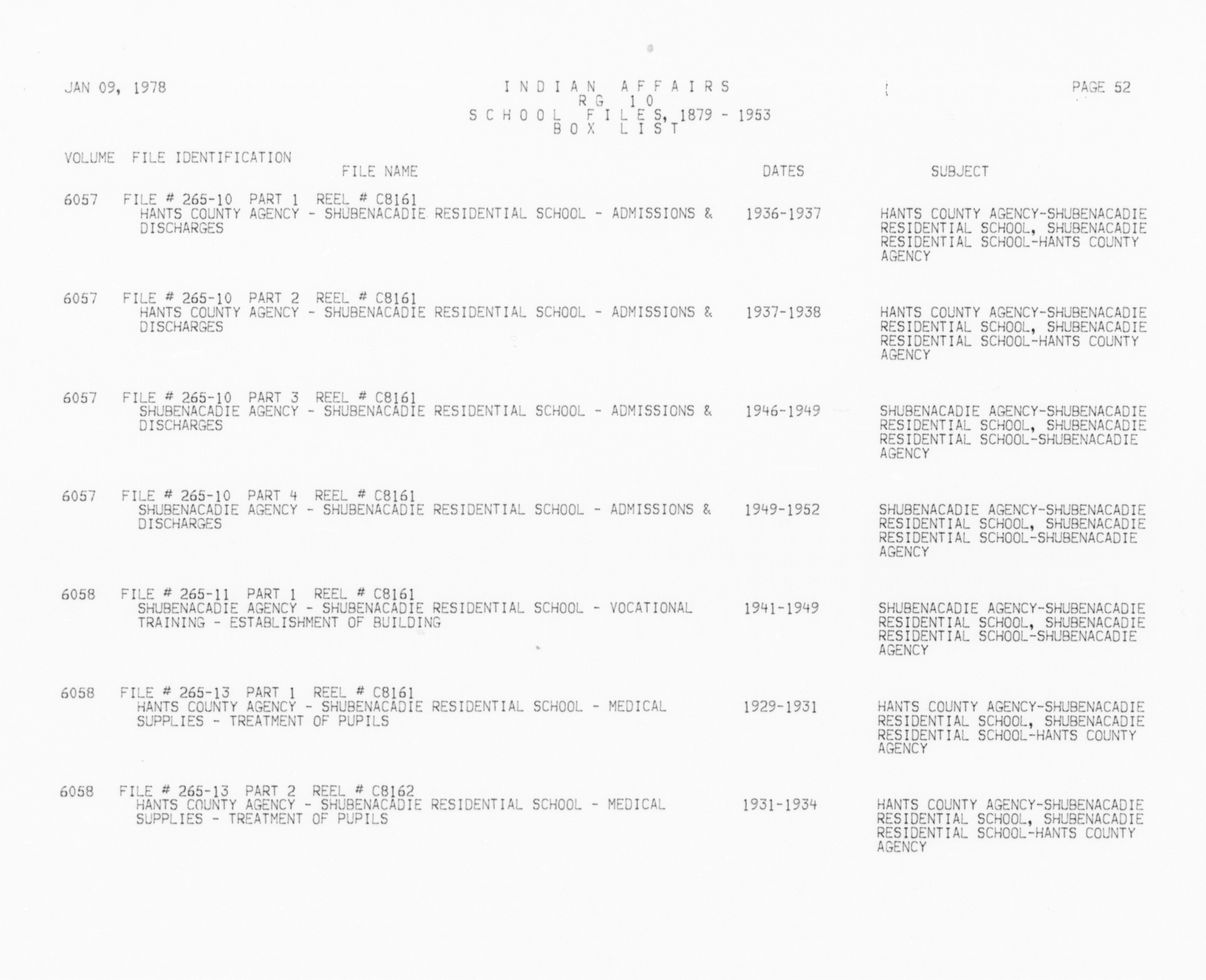 Department of Indian Affairs : School files series, Box List 1879-1953 - 9642