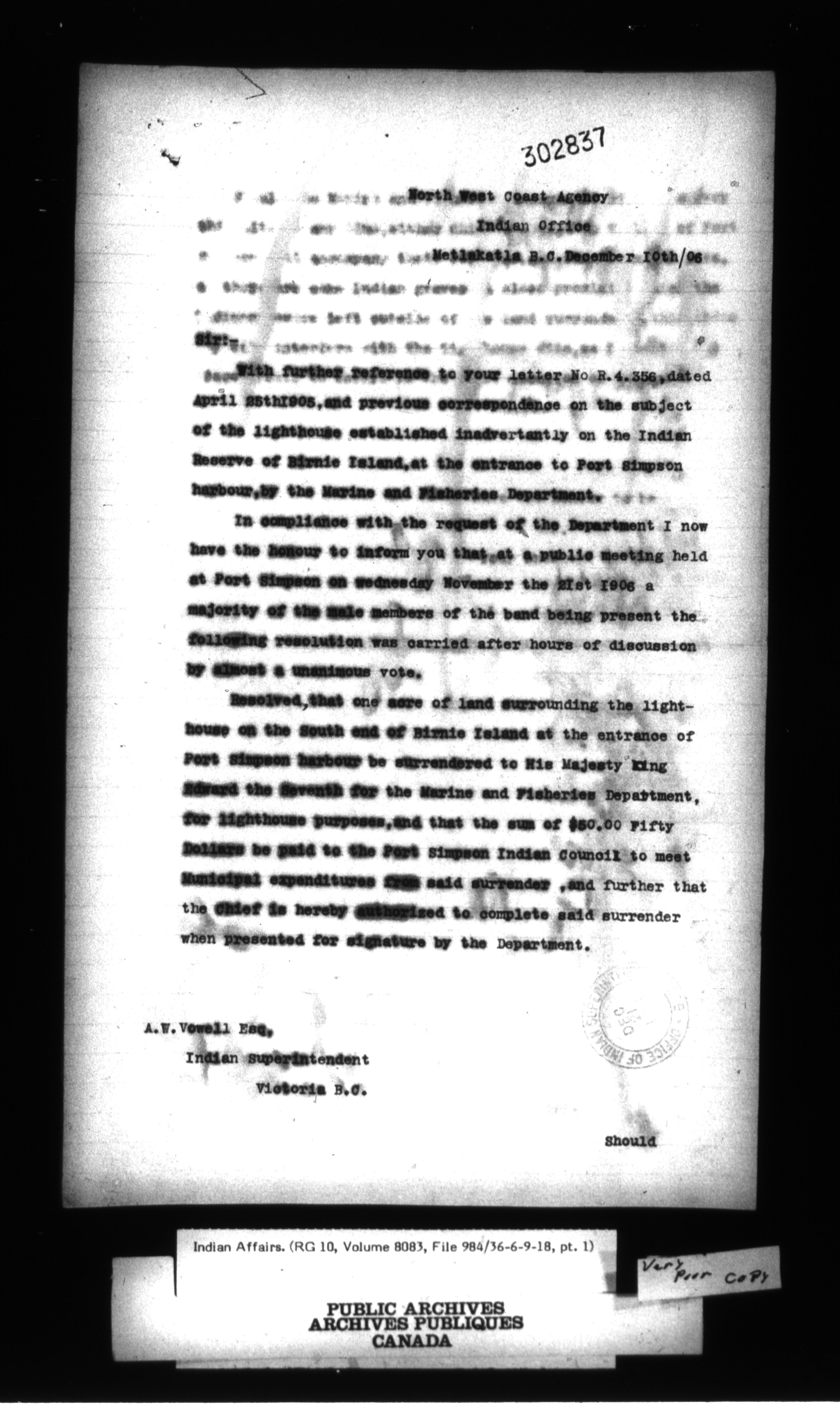 Department of Indian Affairs : Central Registry File - 9652