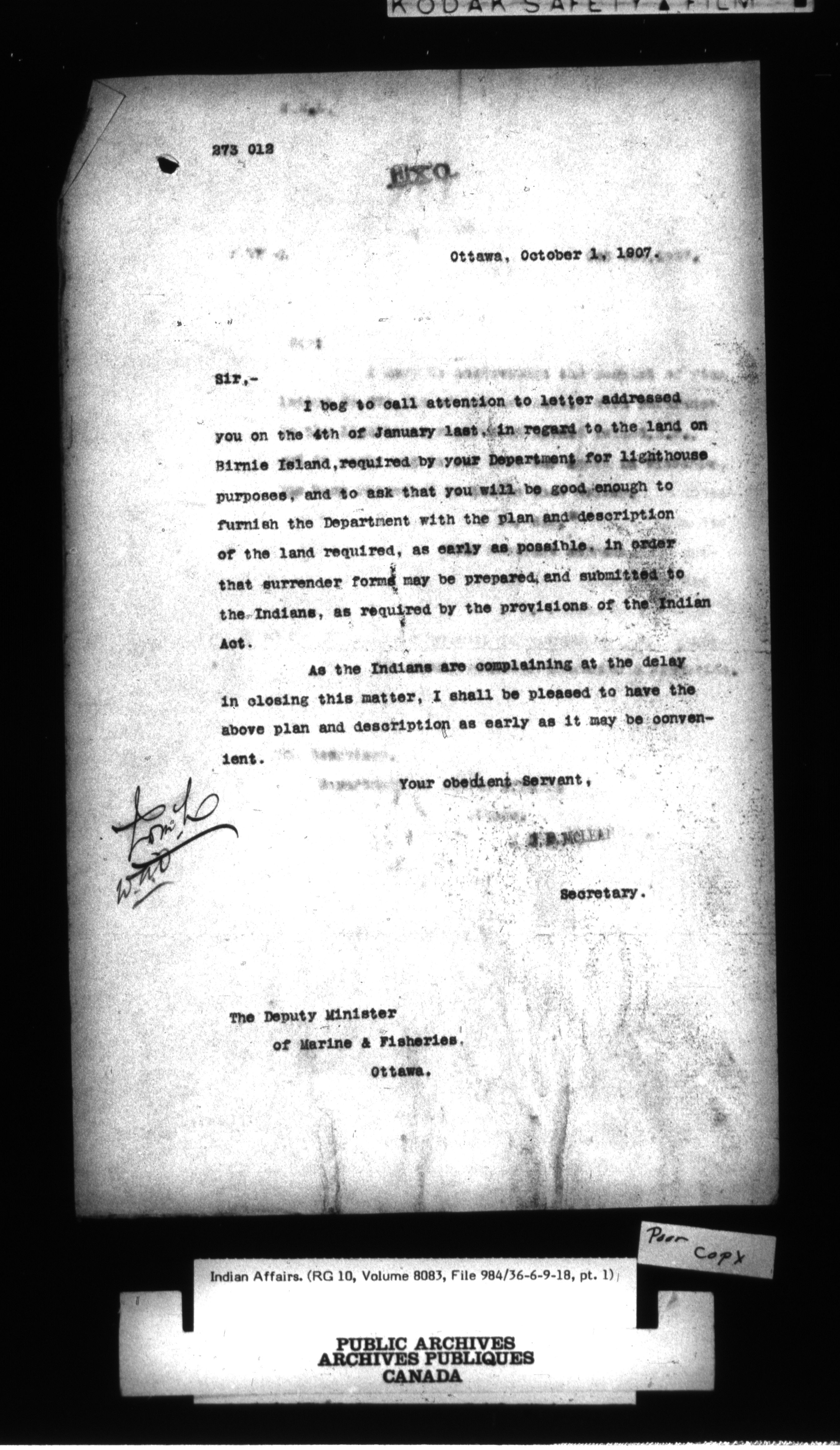 Department of Indian Affairs : Central Registry File - 9652