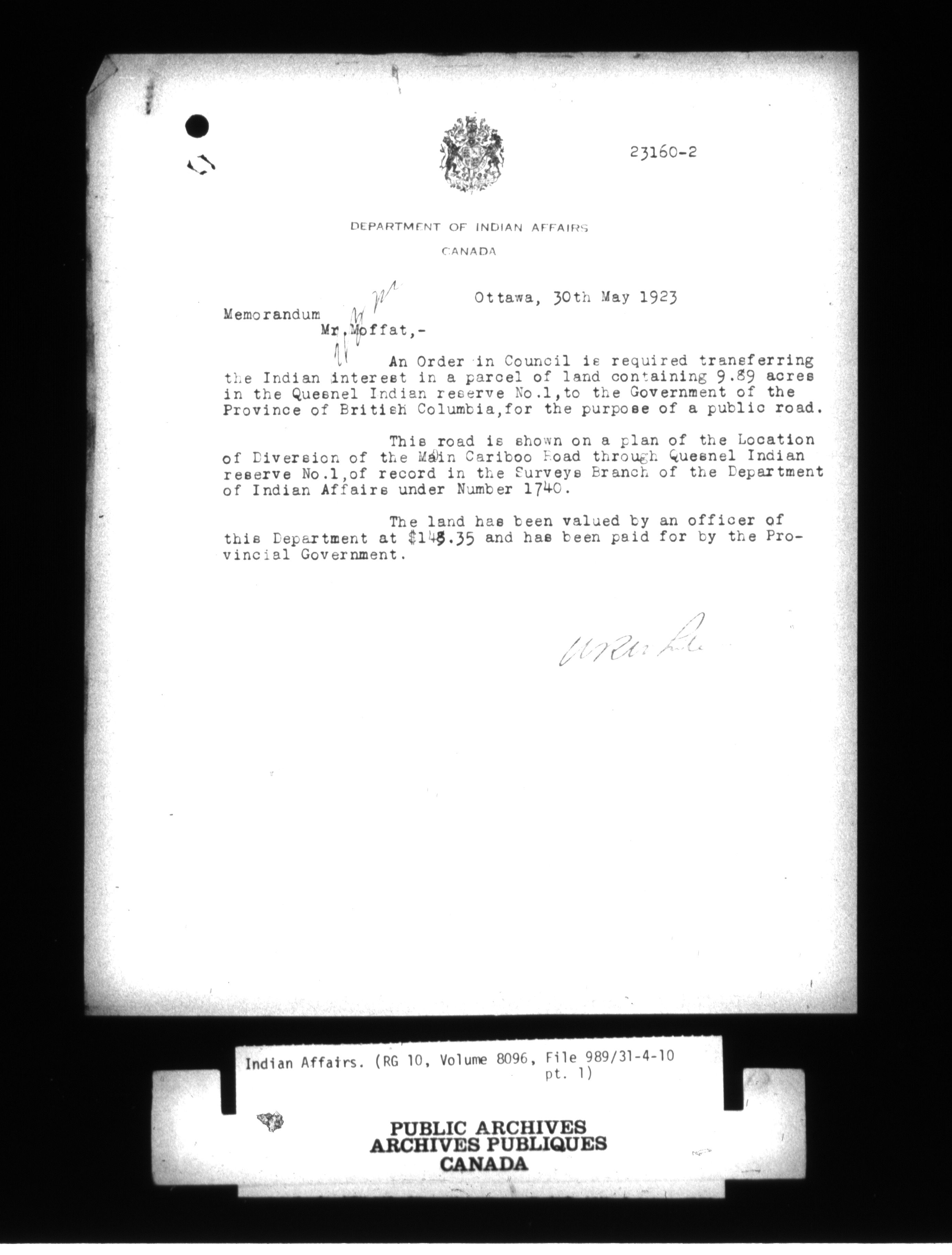 Department of Indian Affairs : Central Registry File - 9656