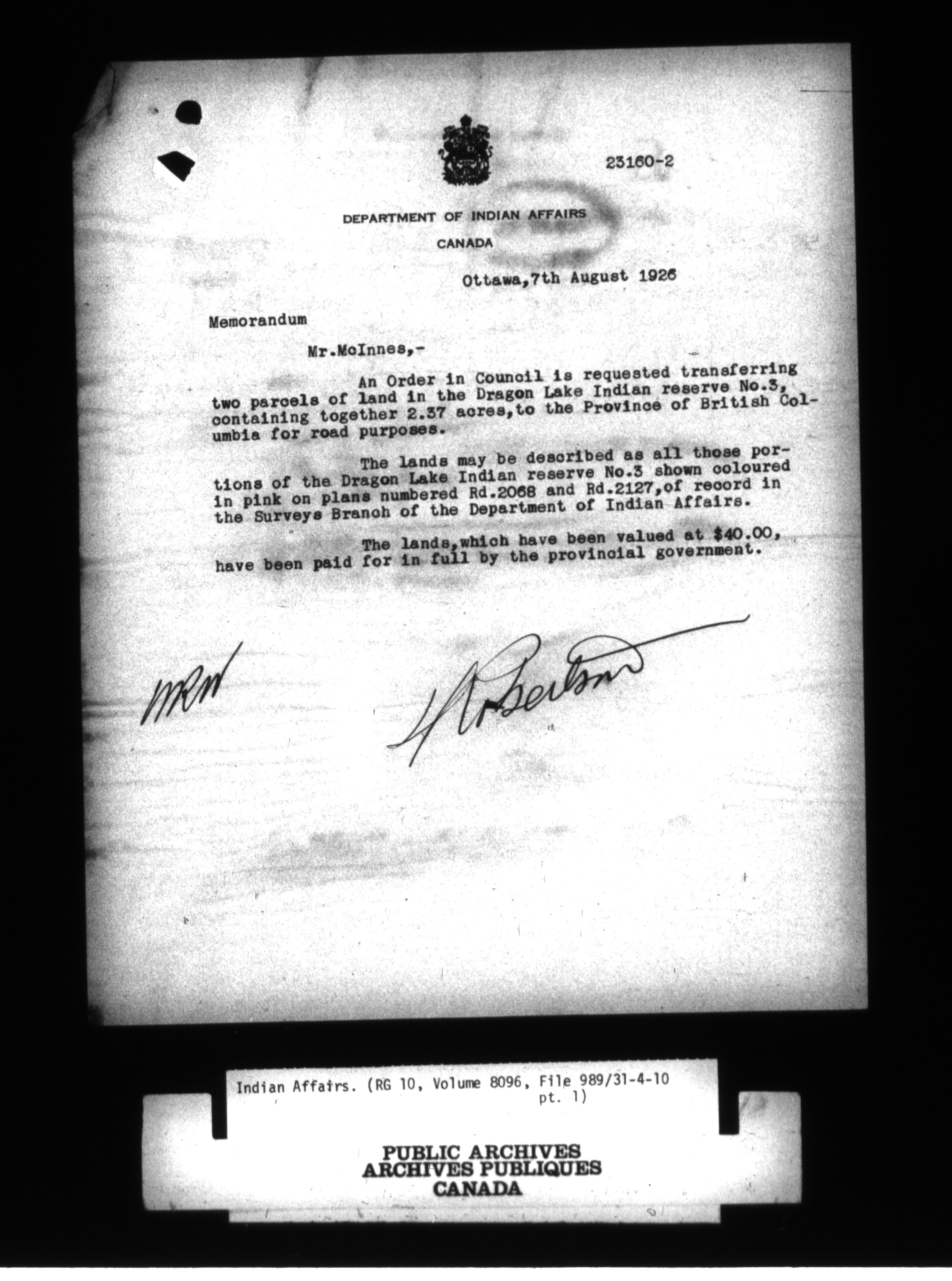 Department of Indian Affairs : Central Registry File - 9656