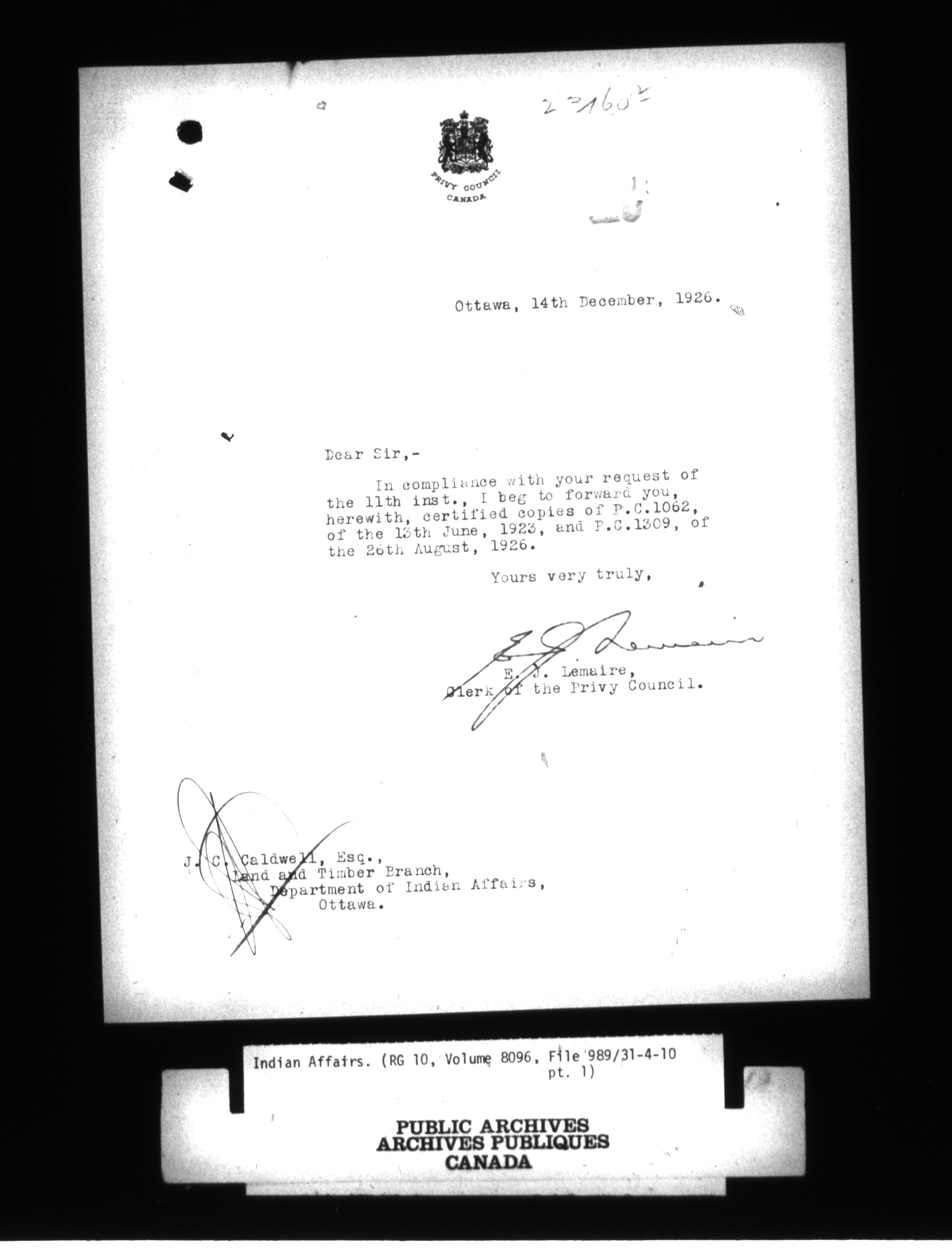 Department of Indian Affairs : Central Registry File - 9656