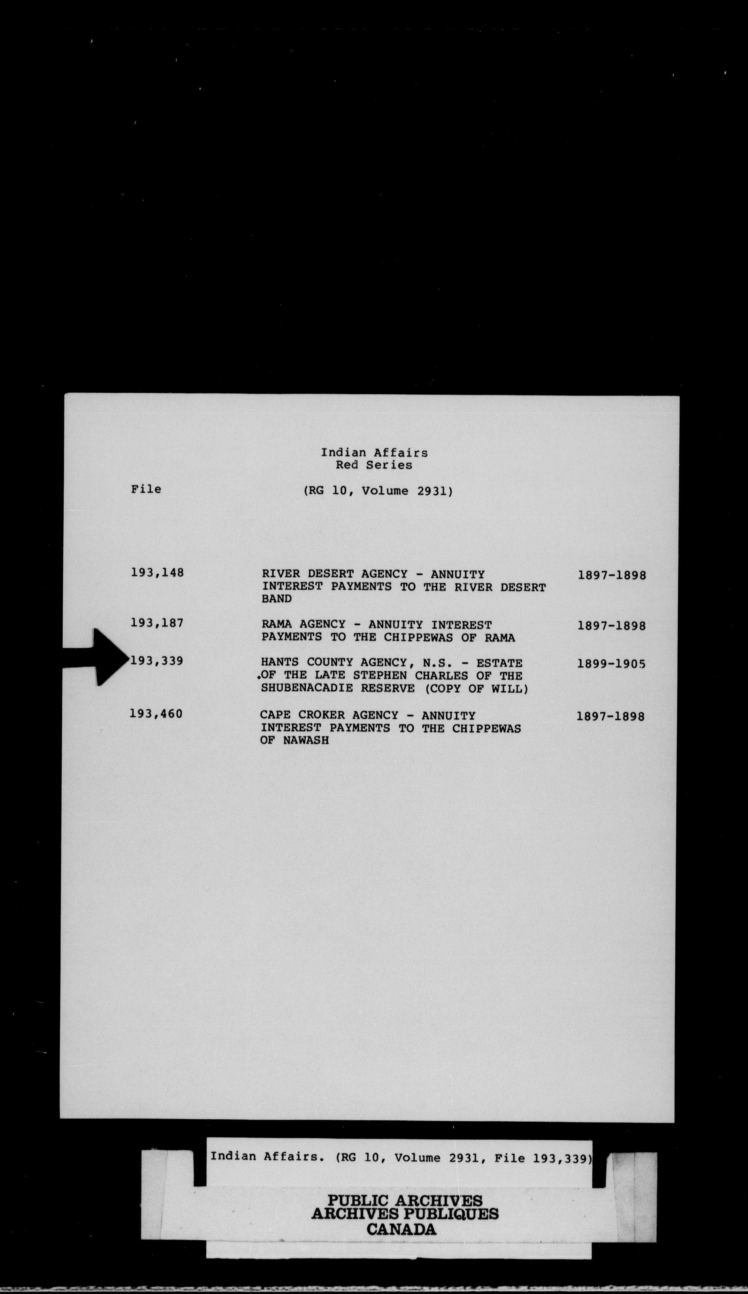 Department of Indian Affairs, Headquarters central registry system : red series - 9663