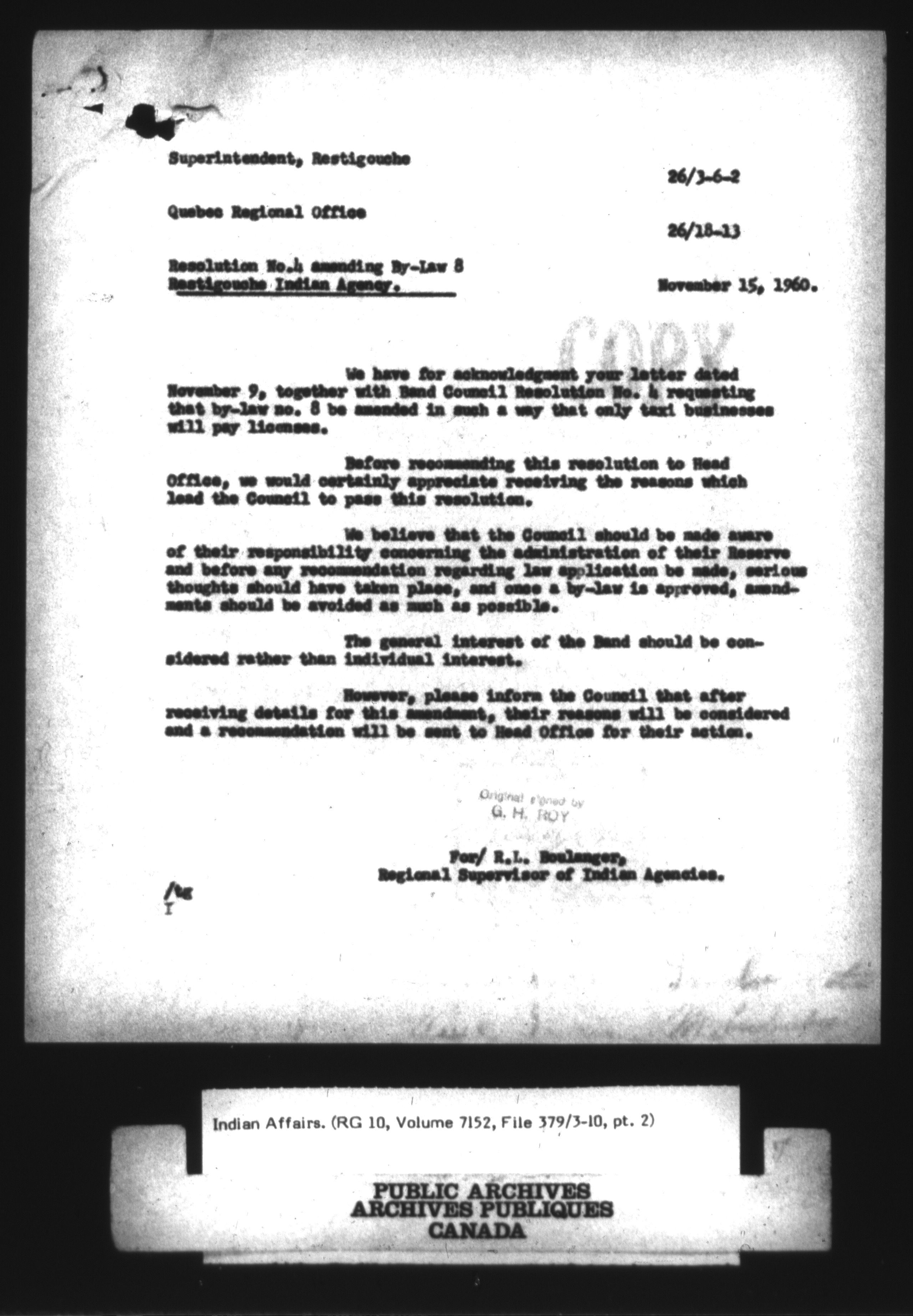 Department of Indian Affairs : Central Registry Files - 9685