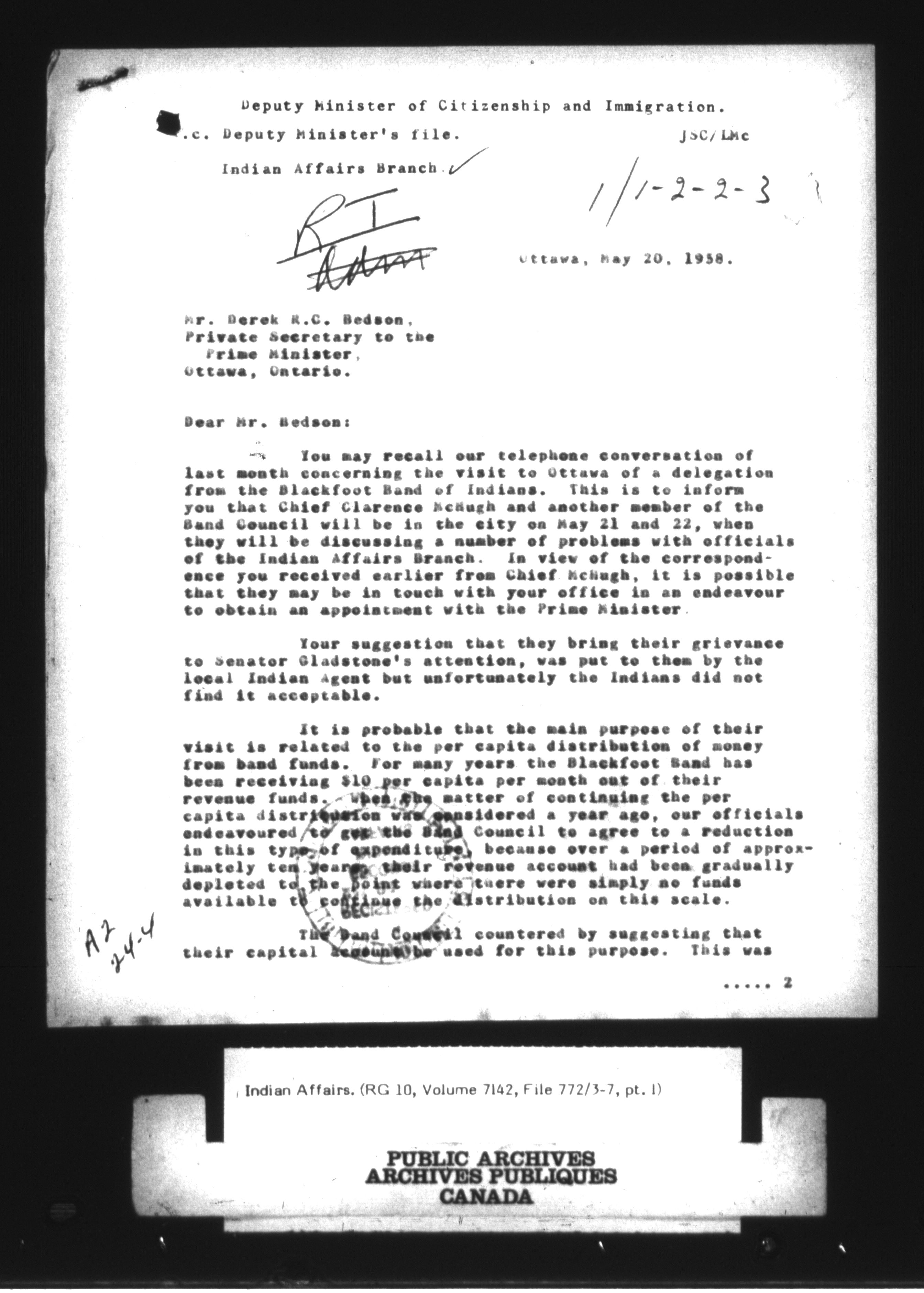 Department of Indian Affairs : Central Registry Files - 9685