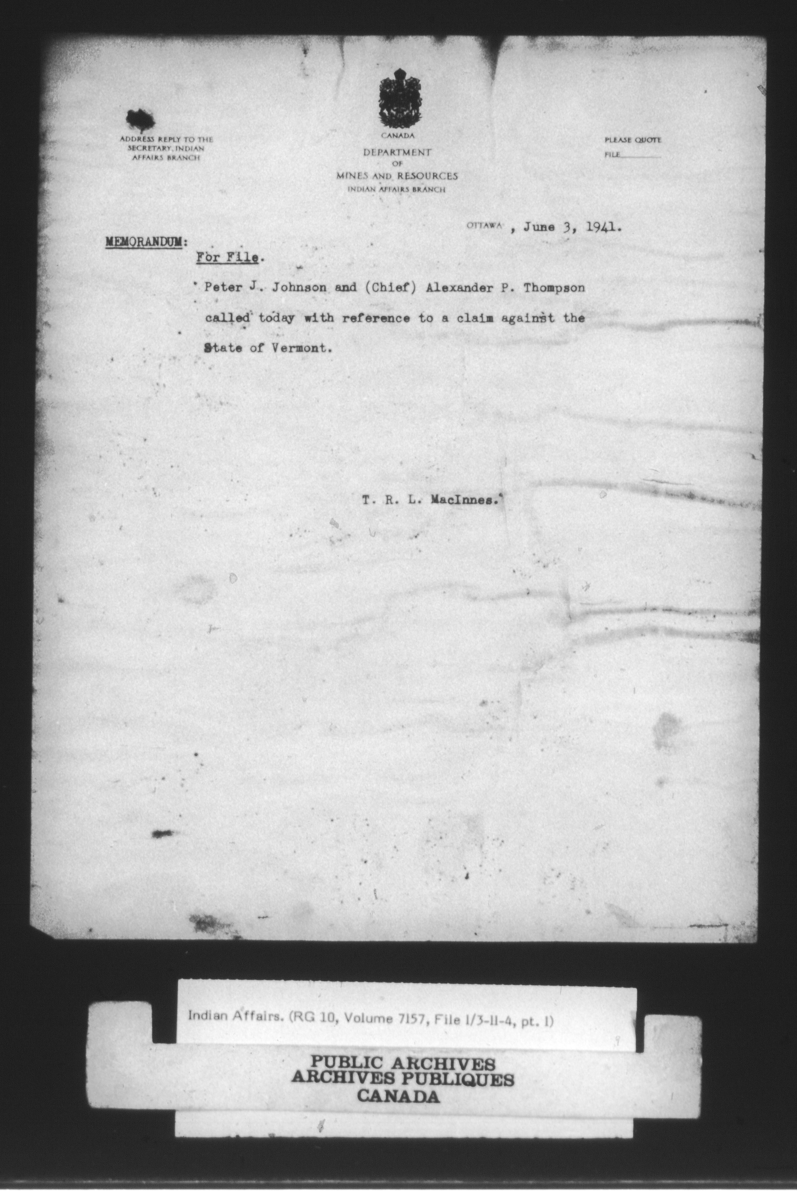 Department of Indian Affairs : Central Registry Files - 9687