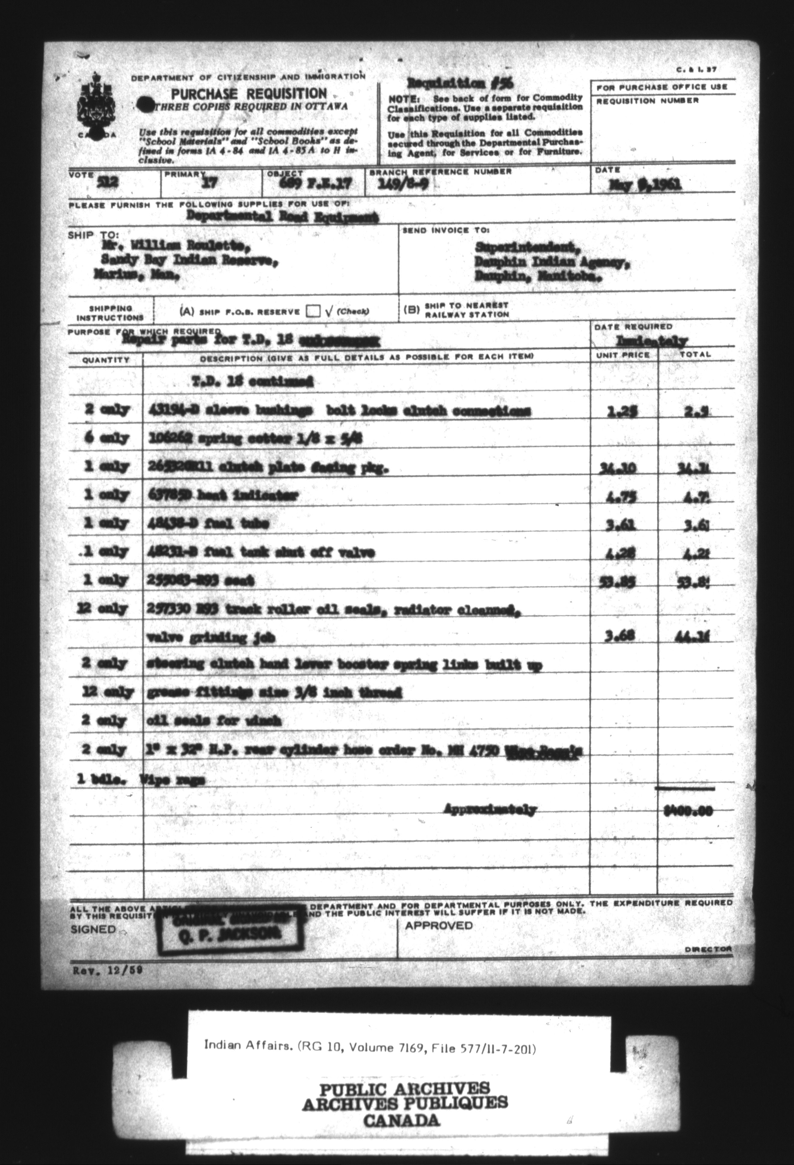 Department of Indian Affairs : Central Registry Files - 9691