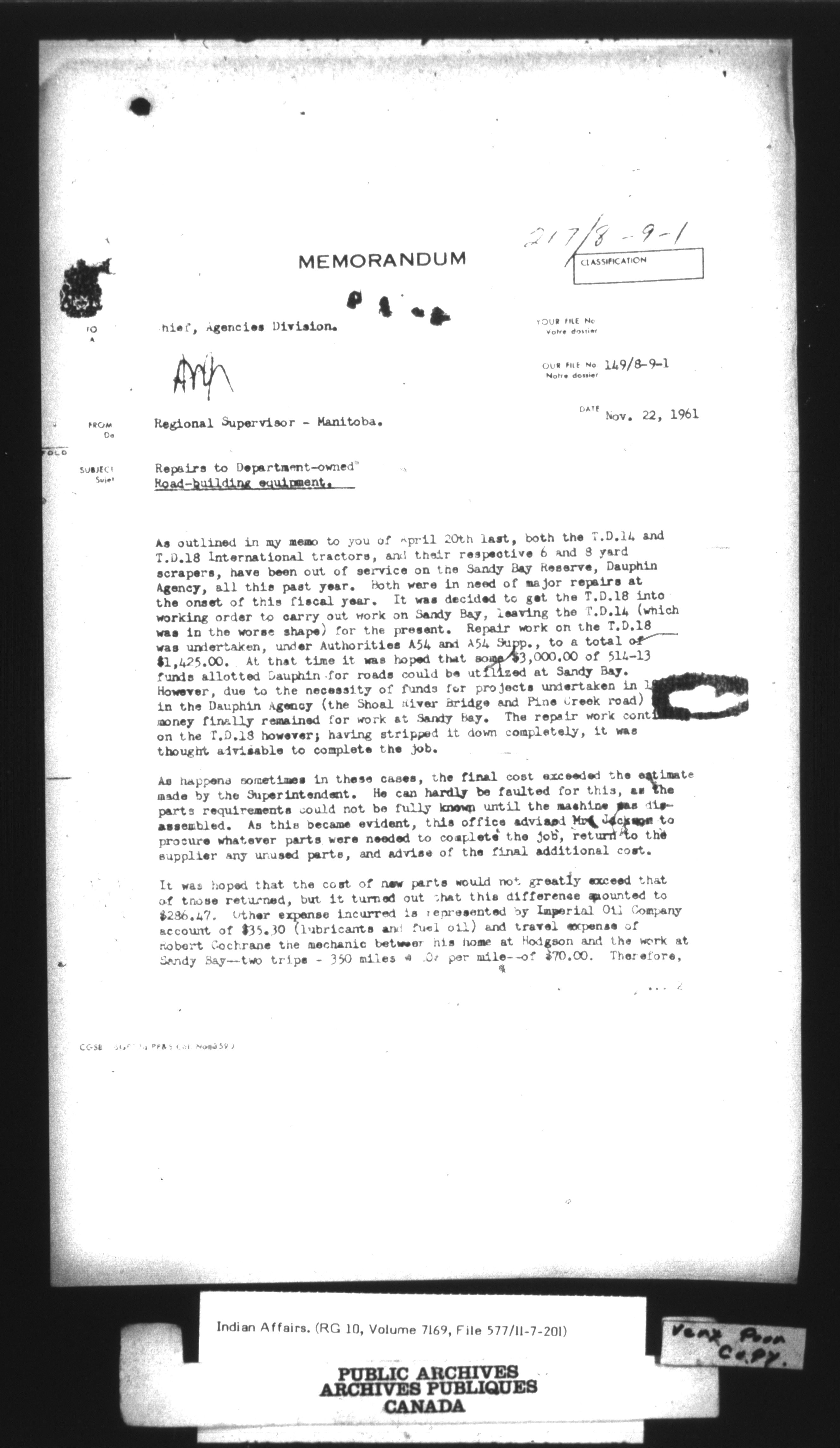 Department of Indian Affairs : Central Registry Files - 9691