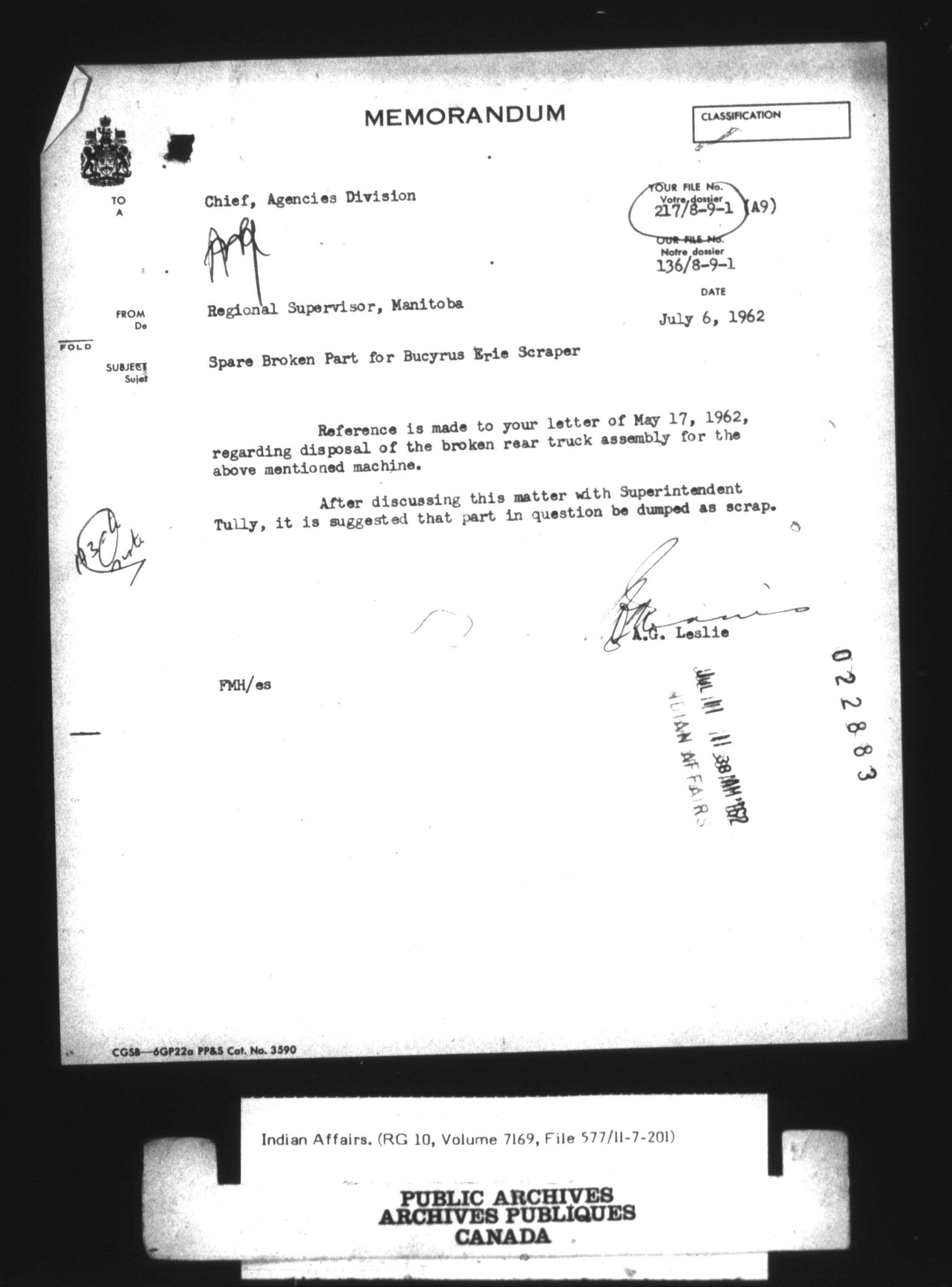 Department of Indian Affairs : Central Registry Files - 9691