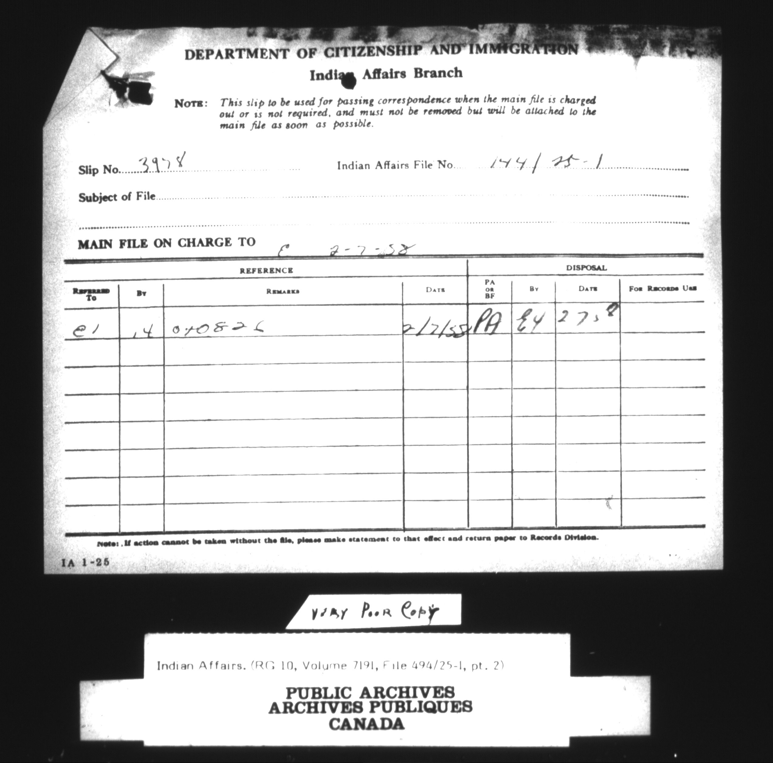 Department of Indian Affairs : Central Registry Files - 9698