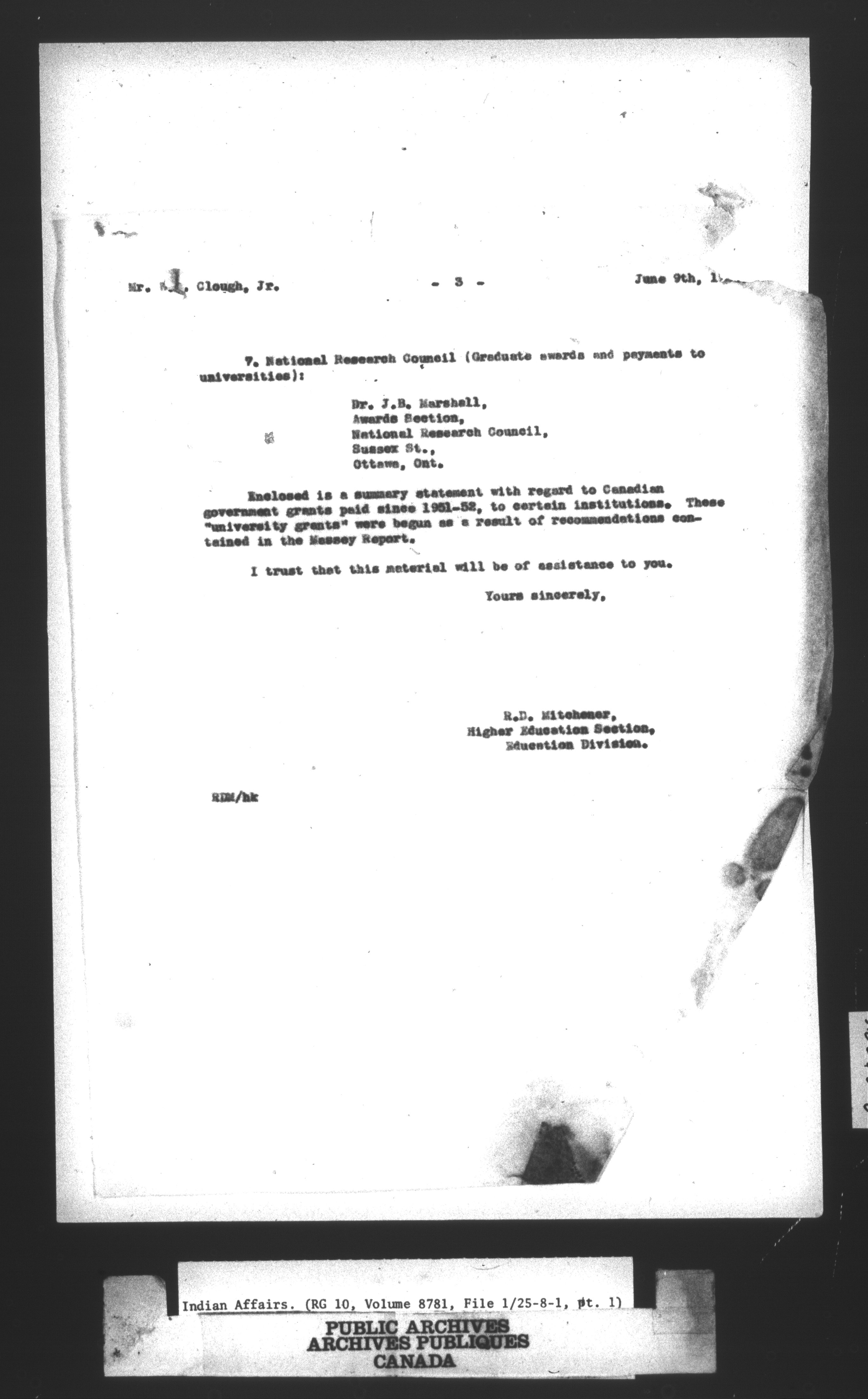 Department of Indian Affairs : Central Registry Files - 9712