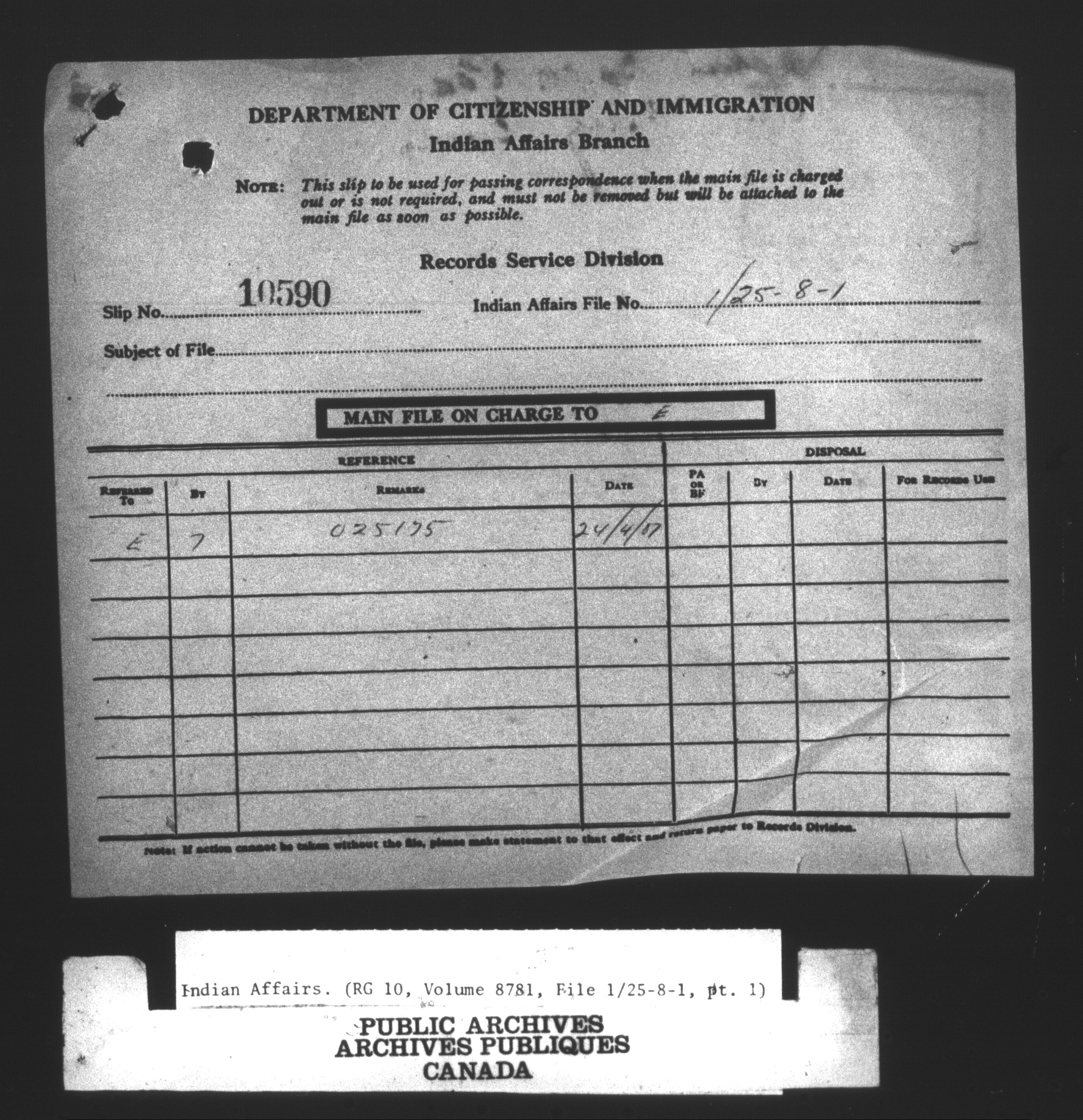 Department of Indian Affairs : Central Registry Files - 9712