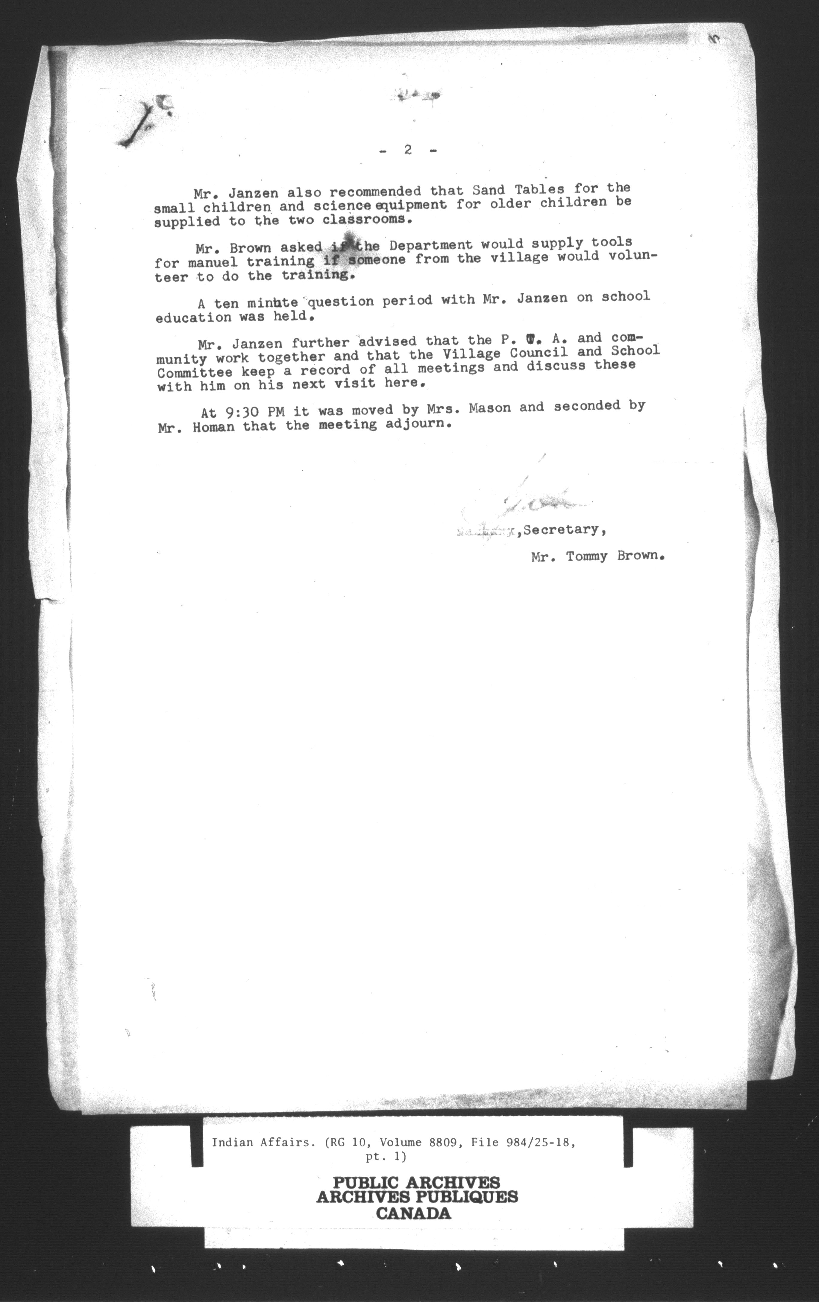Department of Indian Affairs : Central Registry Files - 9721