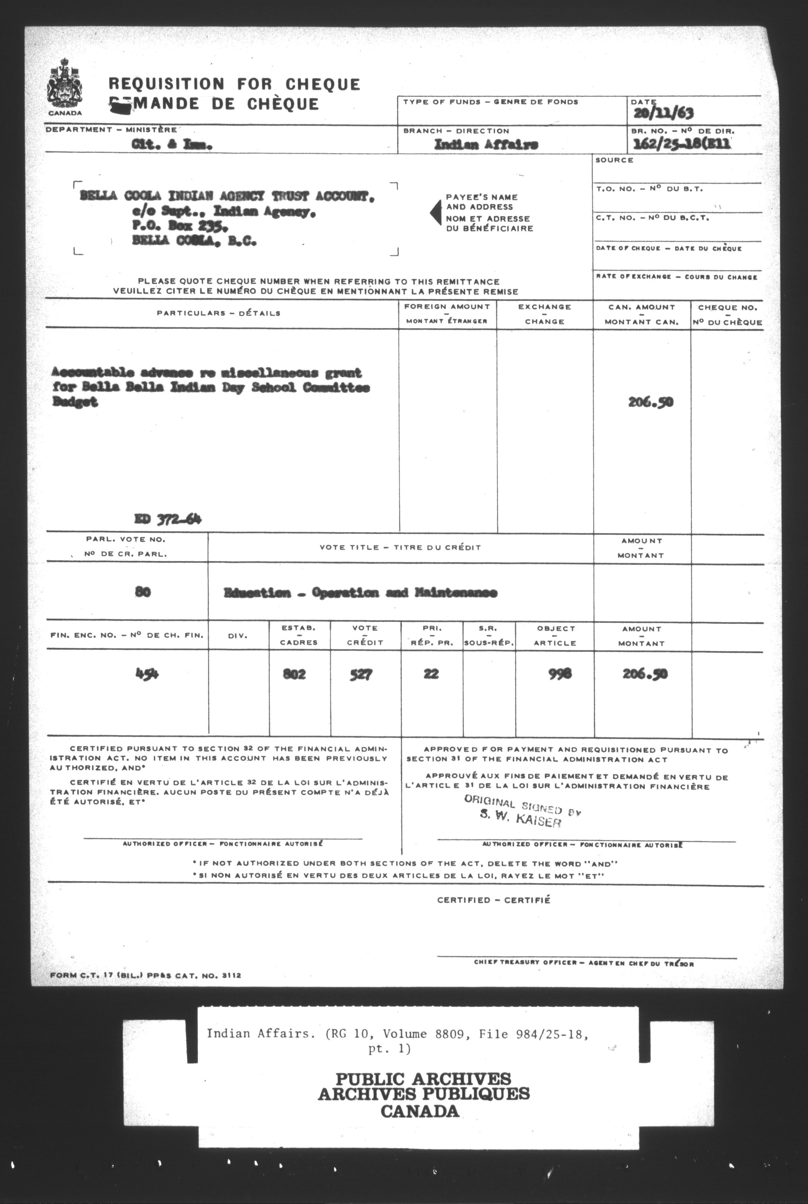 Department of Indian Affairs : Central Registry Files - 9721