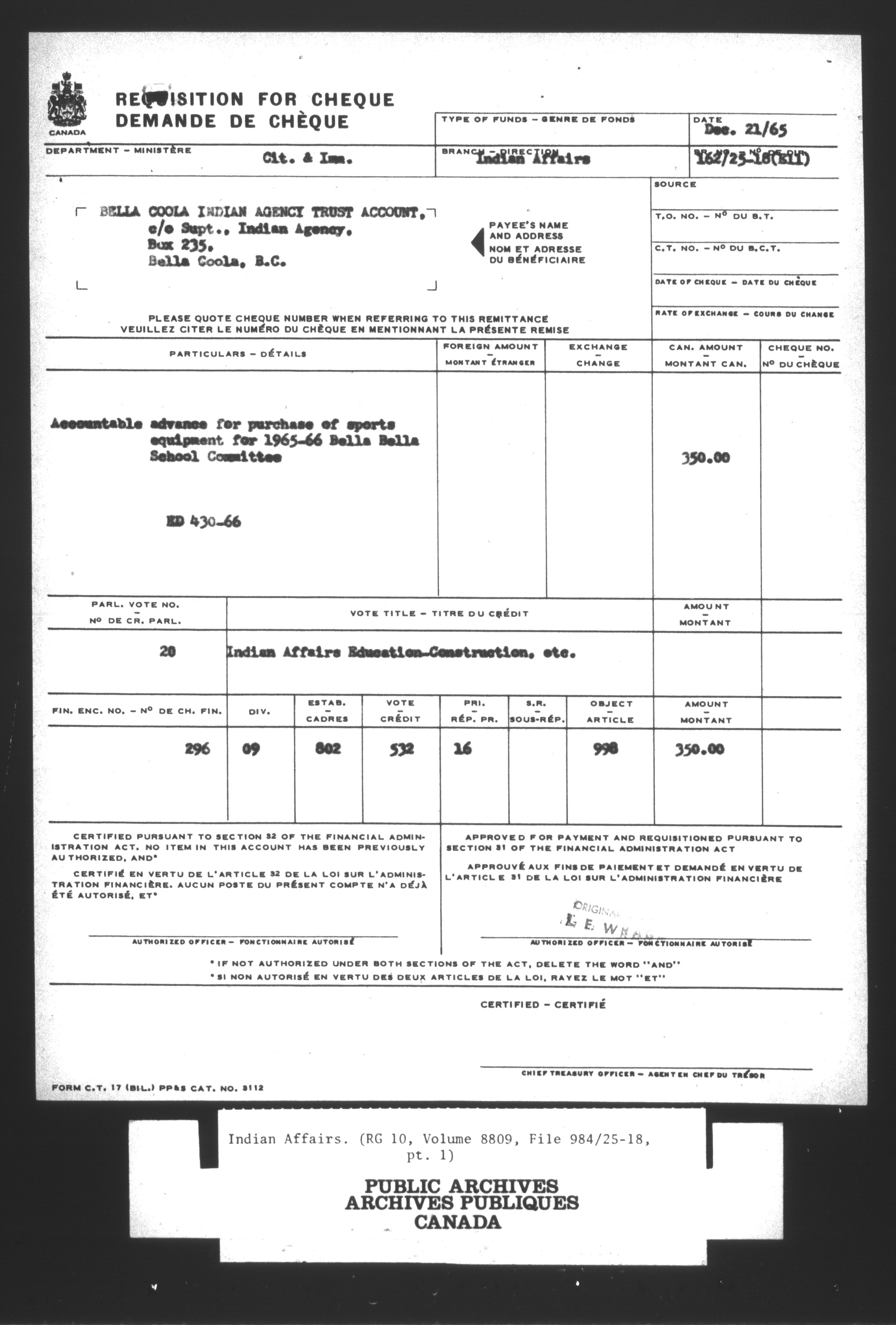 Department of Indian Affairs : Central Registry Files - 9721