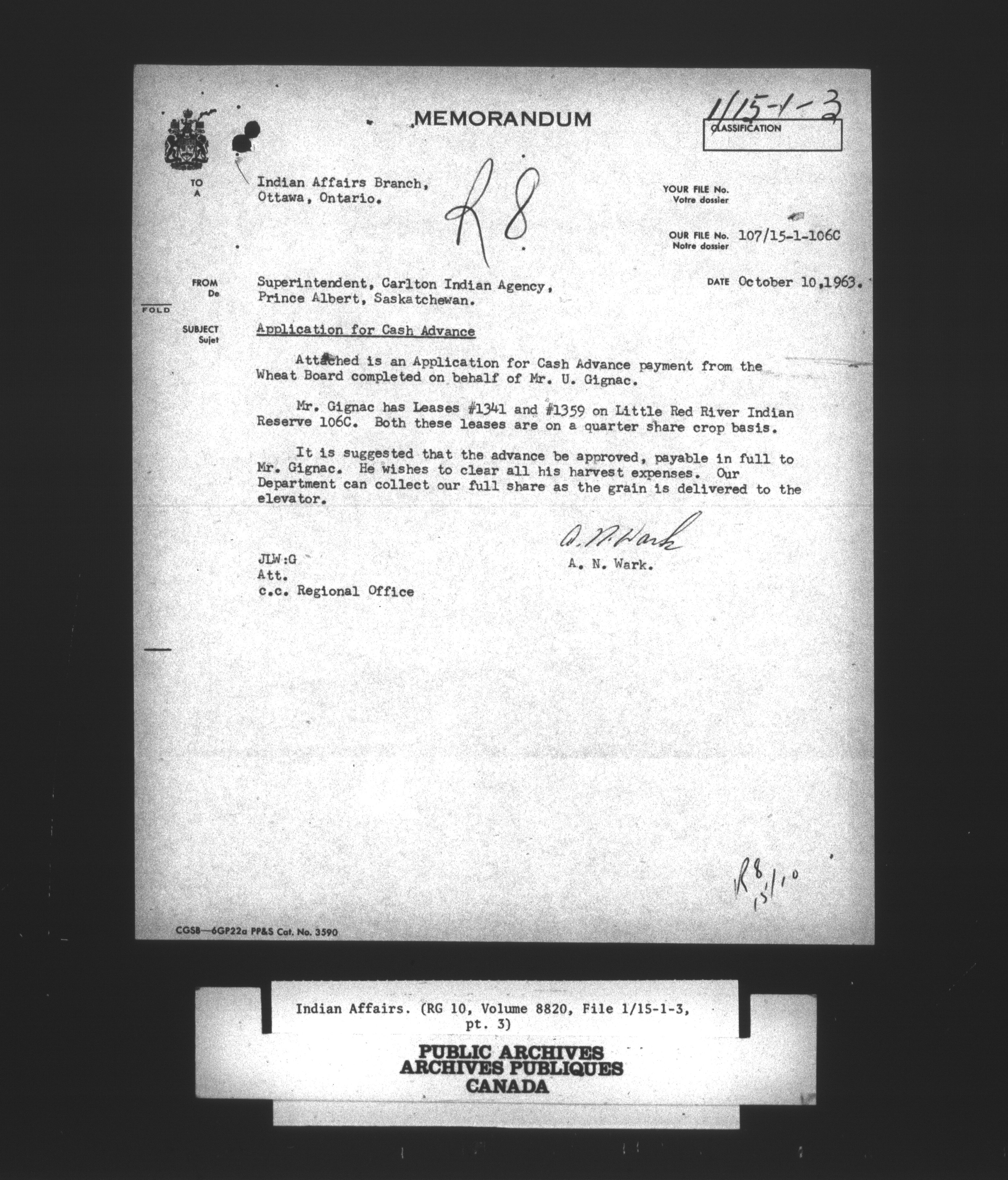 Department of Indian Affairs : Central Registry Files - 9726
