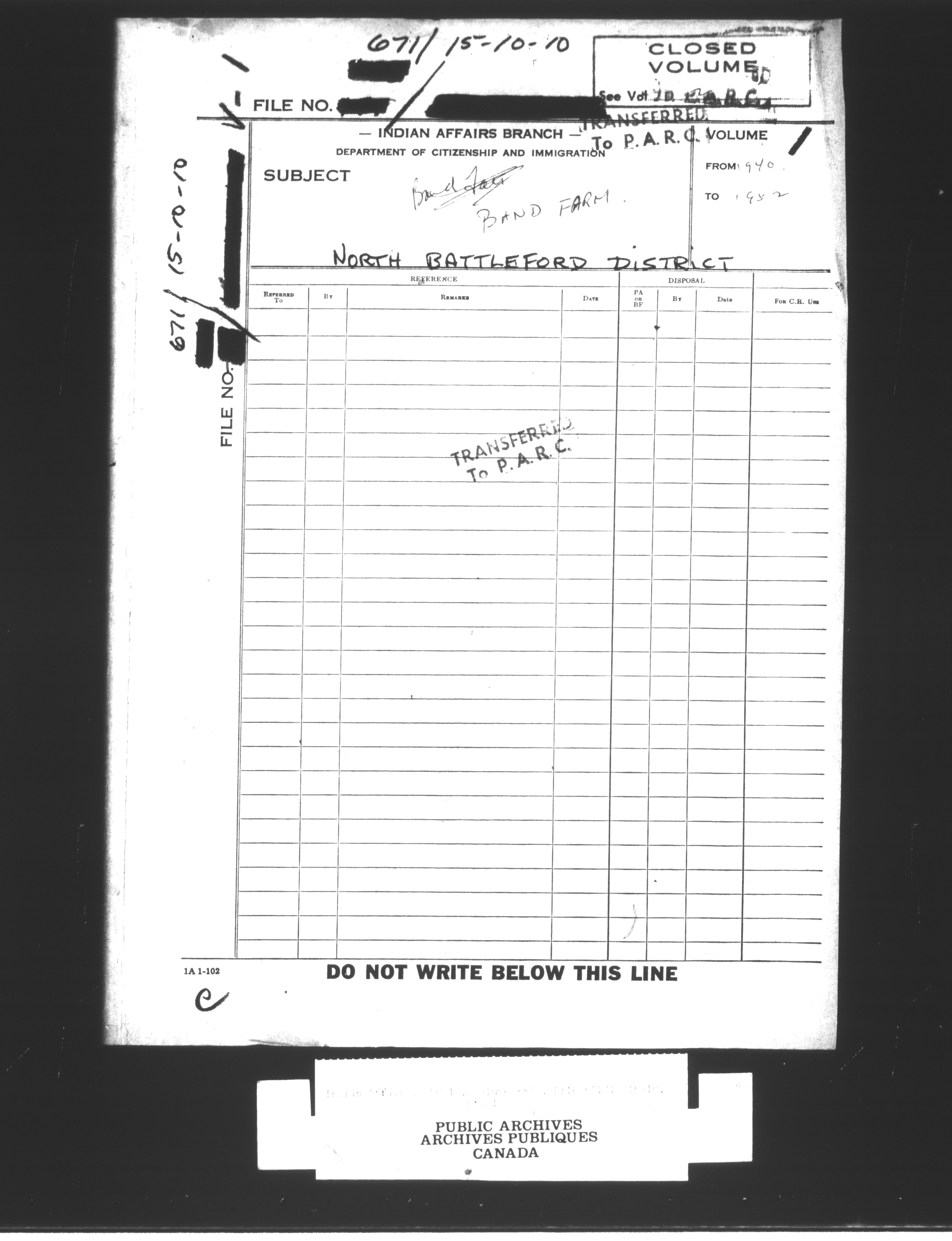 Department of Indian Affairs : Central Registry Files - 9729