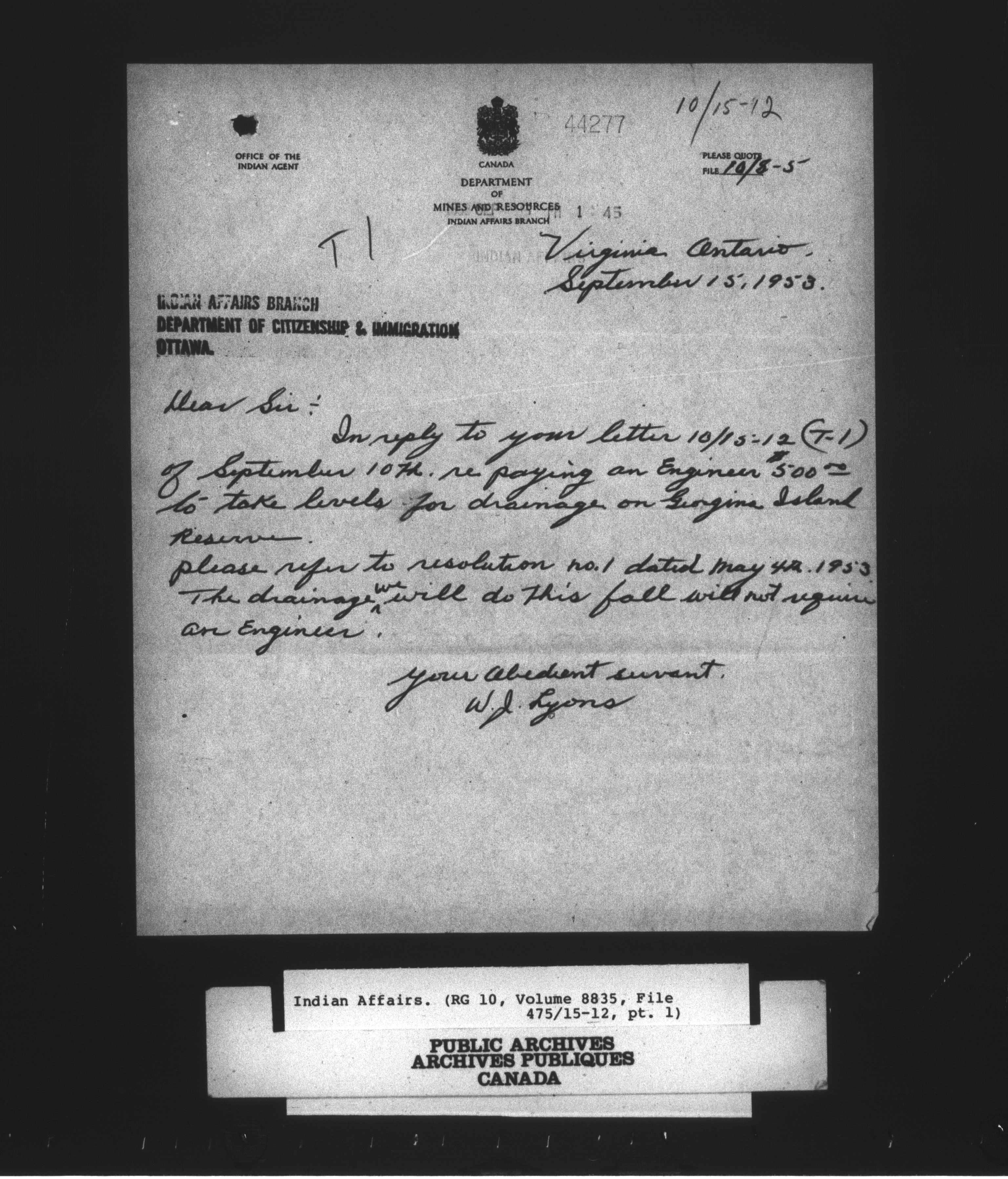 Department of Indian Affairs : Central Registry Files - 9731