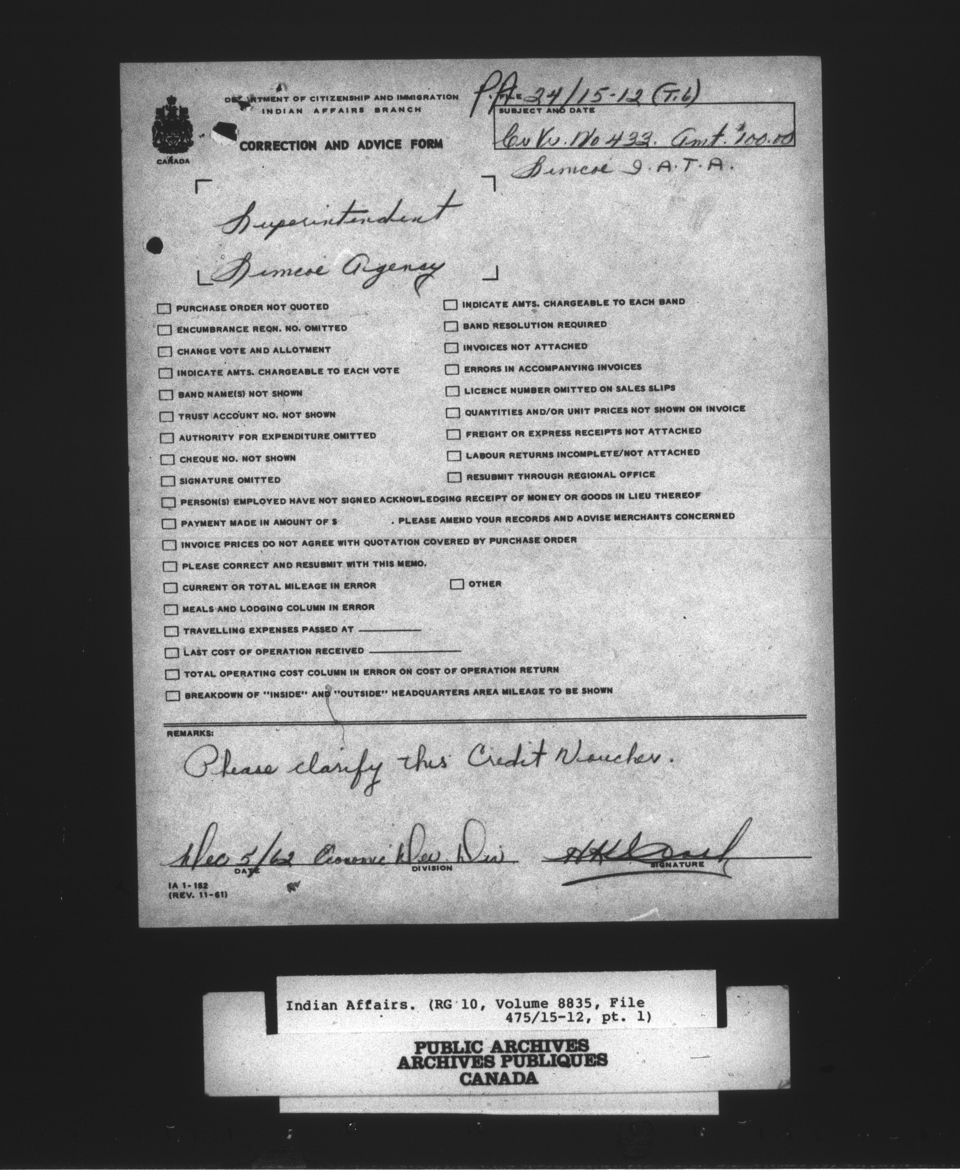 Department of Indian Affairs : Central Registry Files - 9731