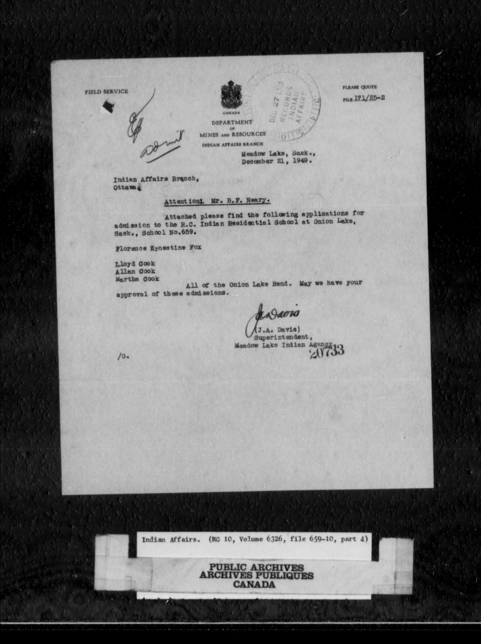 Department of Indian Affairs: School files series - C-9806